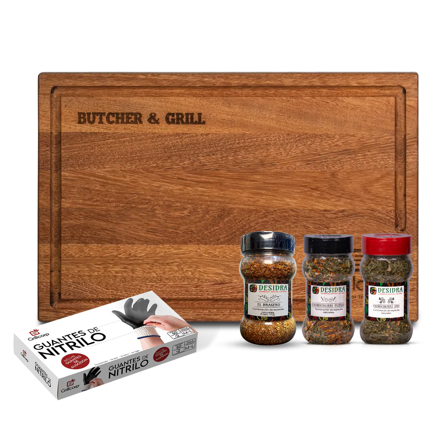 Tabla Parrillera Mediana + Guantes de Nitrilo + 3 Rubs Chicos