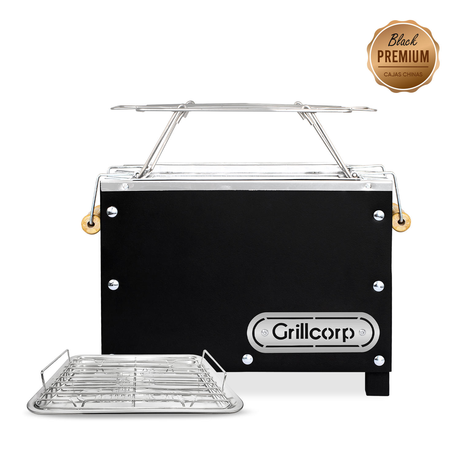 Caja China Mini Black Premium con Parrilla de Varillas Niqueladas | Grillcorp