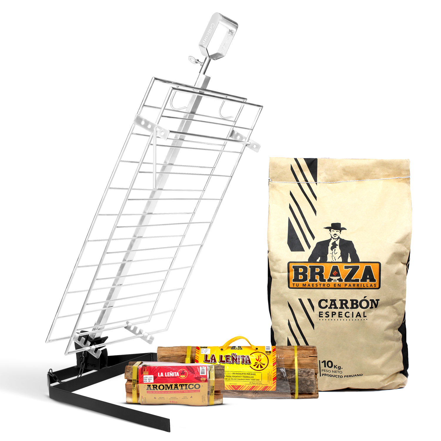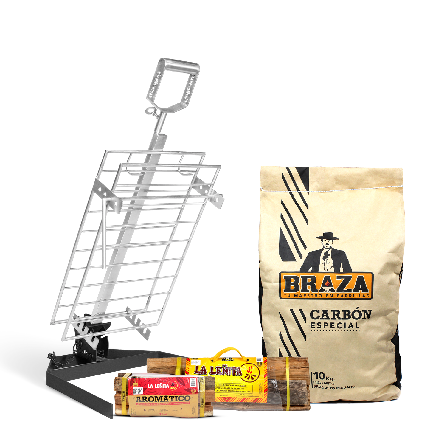 Combo Estaca Inoxidable 60 x 40 cm + Pack carbón y leña