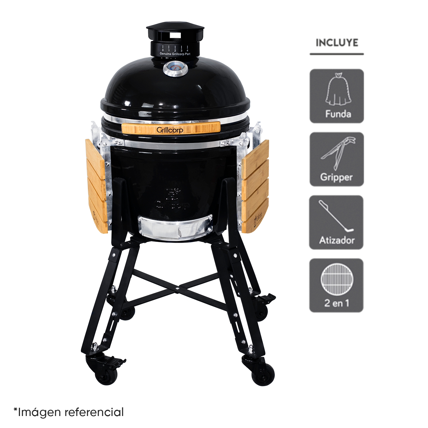 La línea Pro de kamados Grillcorp, ofrece un equipo multifuncional que cumple el papel de parrilla, asador, ahumador; destacando por encima...