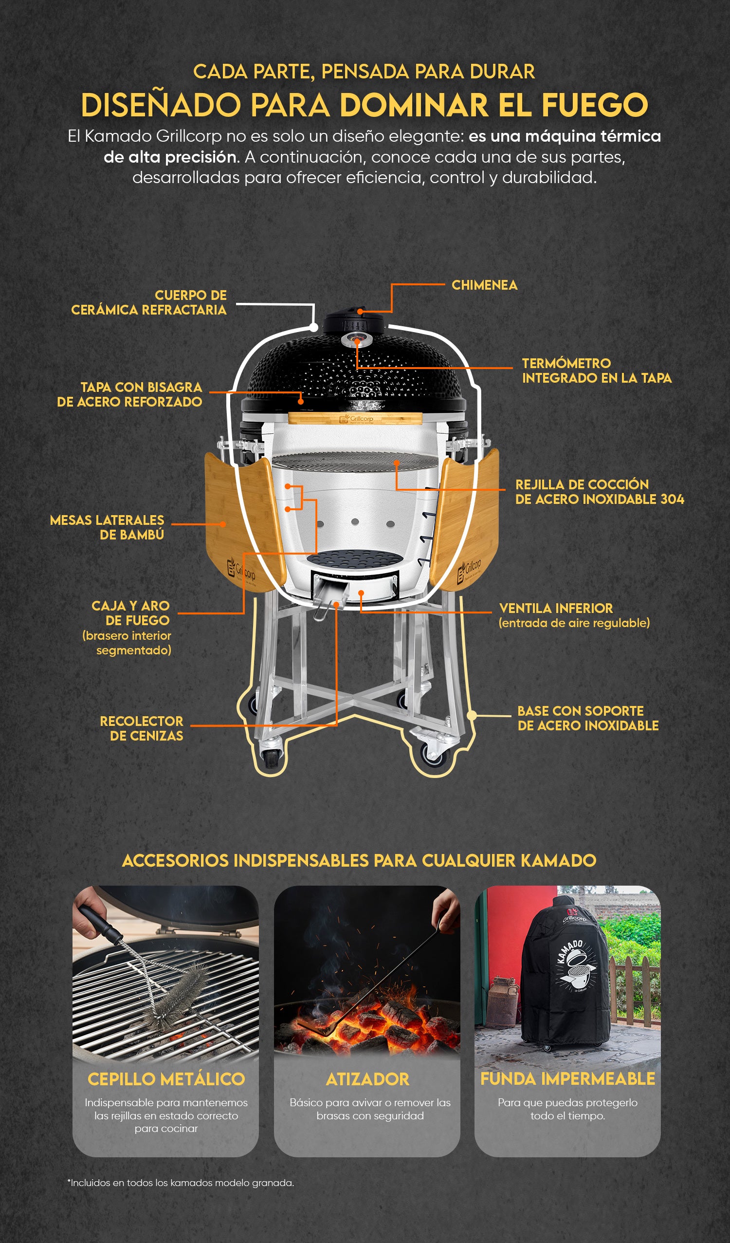 Pensado en tener una circulación libre y constante todo el tiempo, solo retira la ceniza en exceso y sigue disfrutando de todo el potencial del kamado.