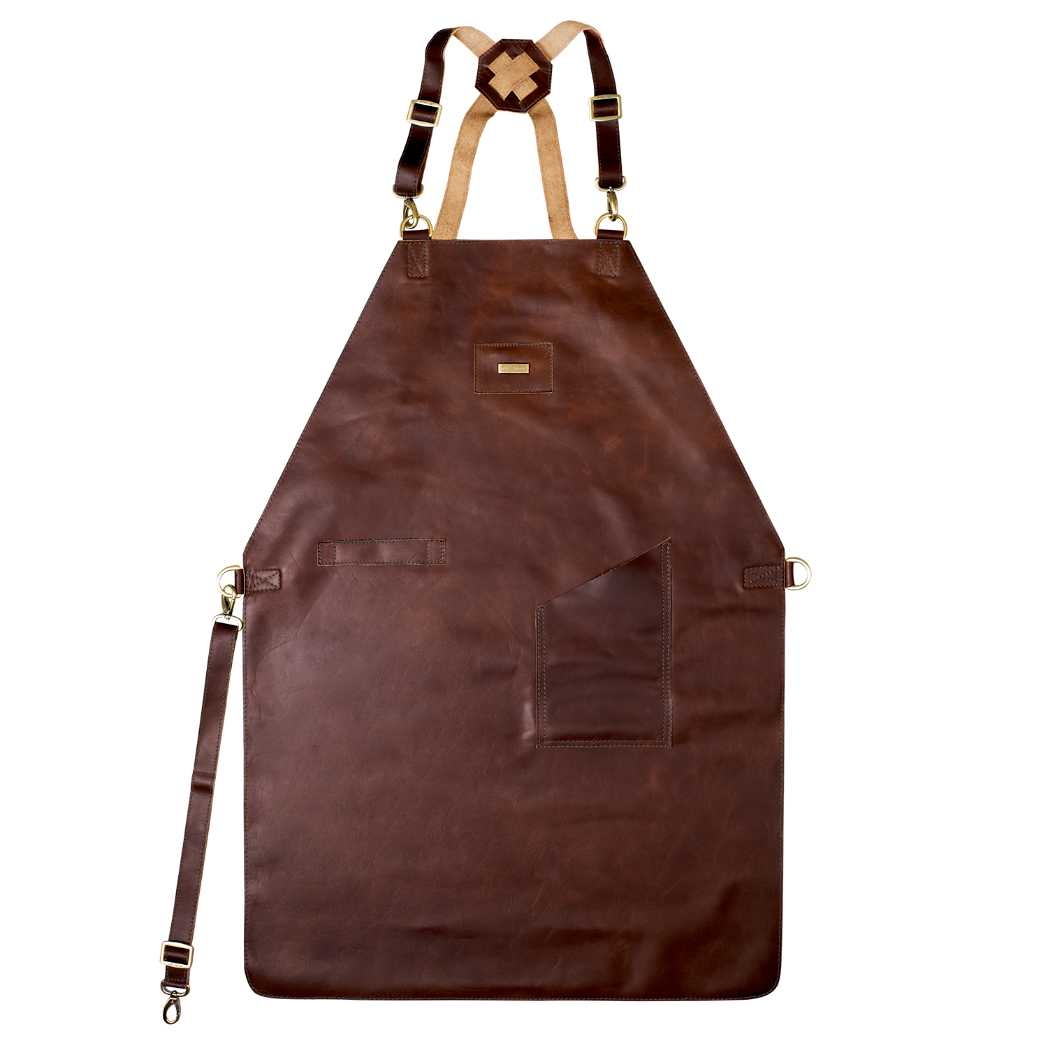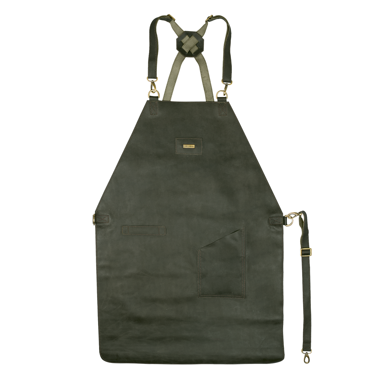 El mandil de cuero evoca la esencia de lo rústico y la autenticidad del cuero genuino con diseño de correas cruzadas, combina la durabilidad...
