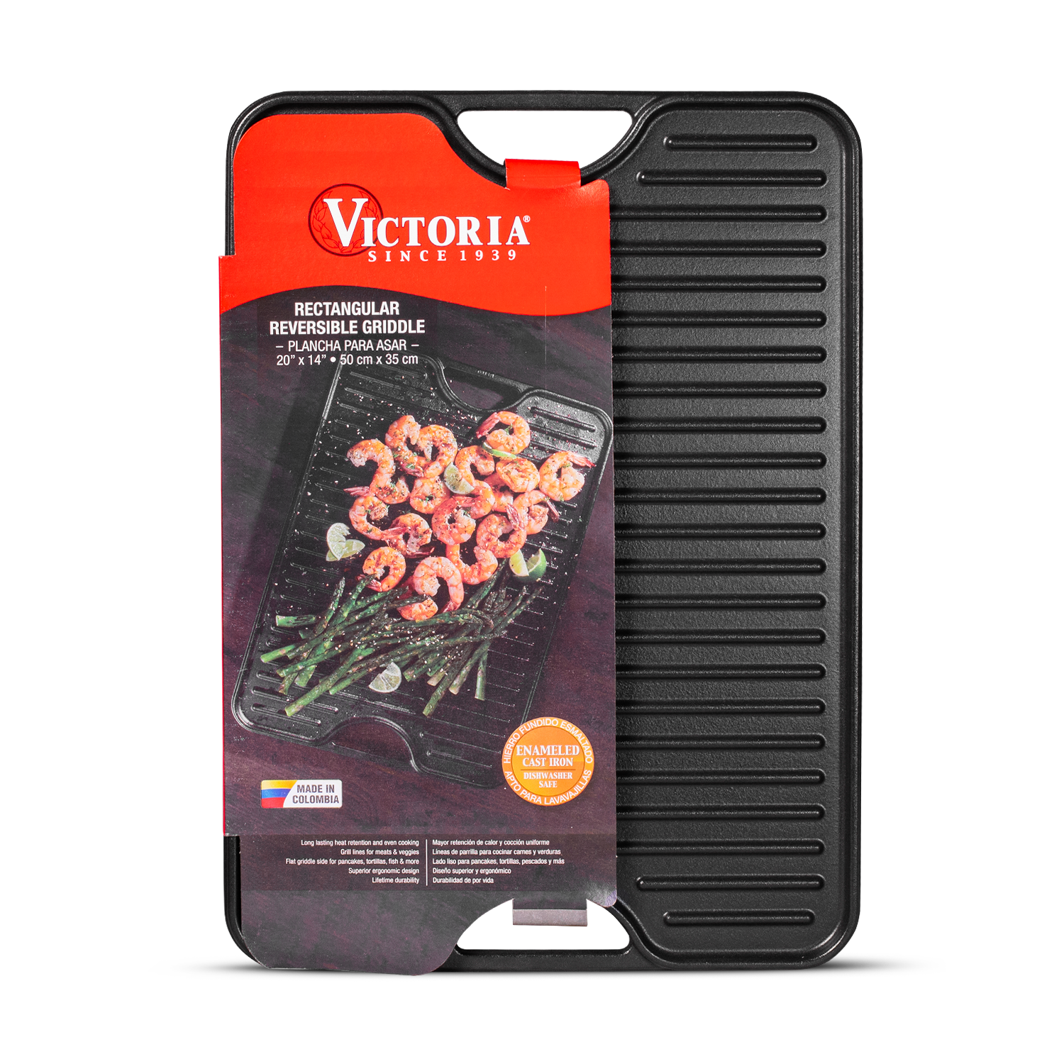 Descubre la versatilidad y durabilidad de la plancha reversible de hierro fundido esmaltado de Victoria. Diseñada para quienes aman cocinar...