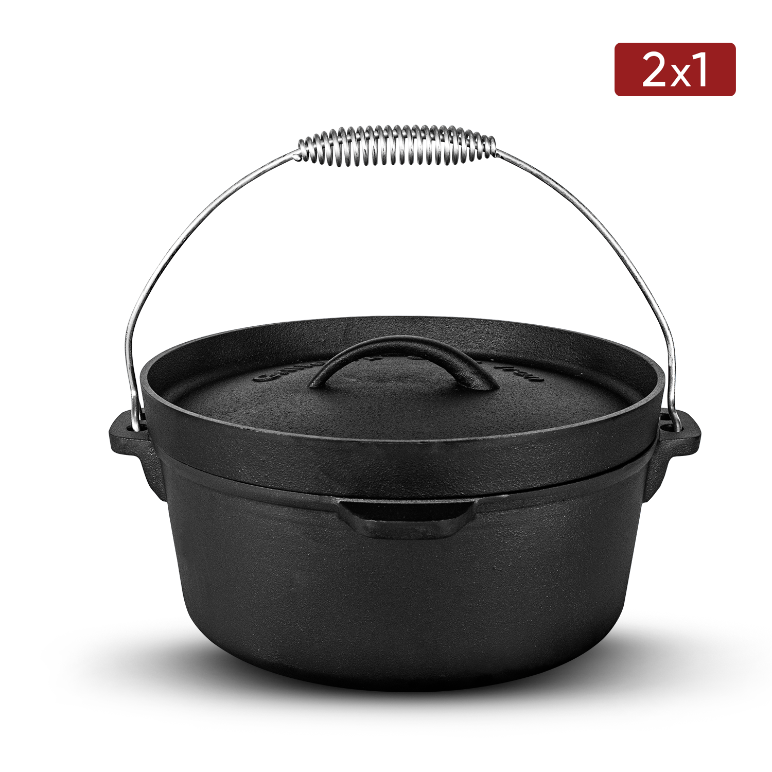 Sartén N° 25 Cuadrado de Hierro Fundido con Tapa de Vidrio y Mango de goma
