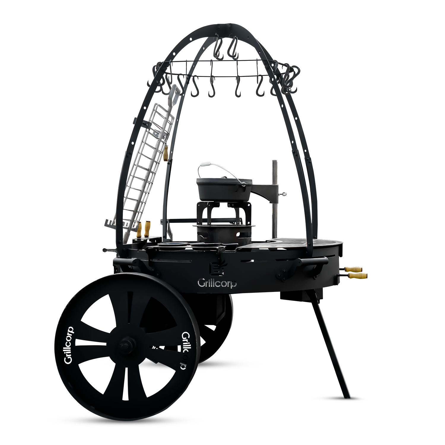 Carro Fogonero TITÁN totalmente de estructura de fierro.Incluye:Base, brasero, sistema de ruedas, parrilla media luna, estaca tipo prensa, Hornilla para...