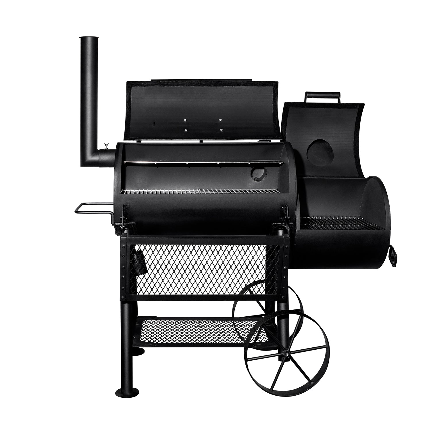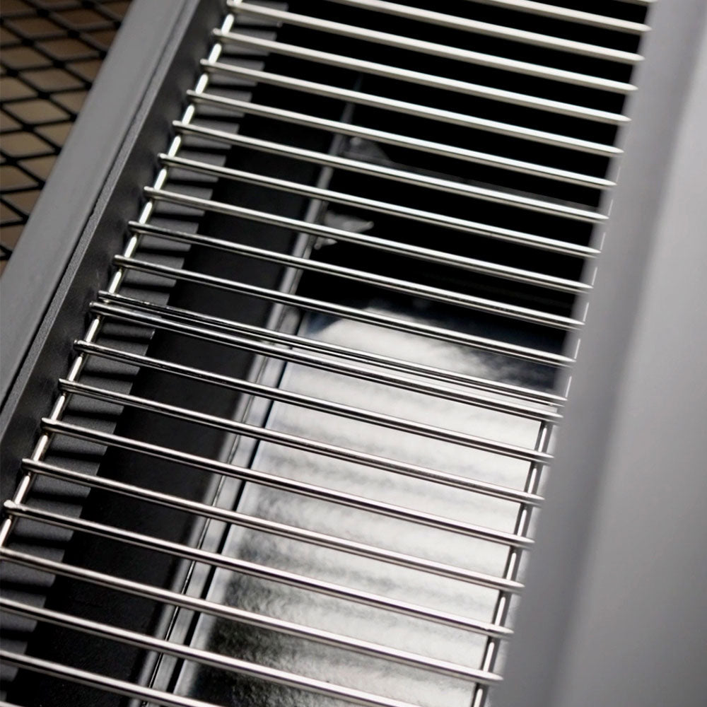 Un diseño compacto y versátil donde pueden estar ubicados de patios y terrazas con facilidad. Además, la característica más atractiva es la combinación perfecta de la parrilla de carbón principal y el ahumador.