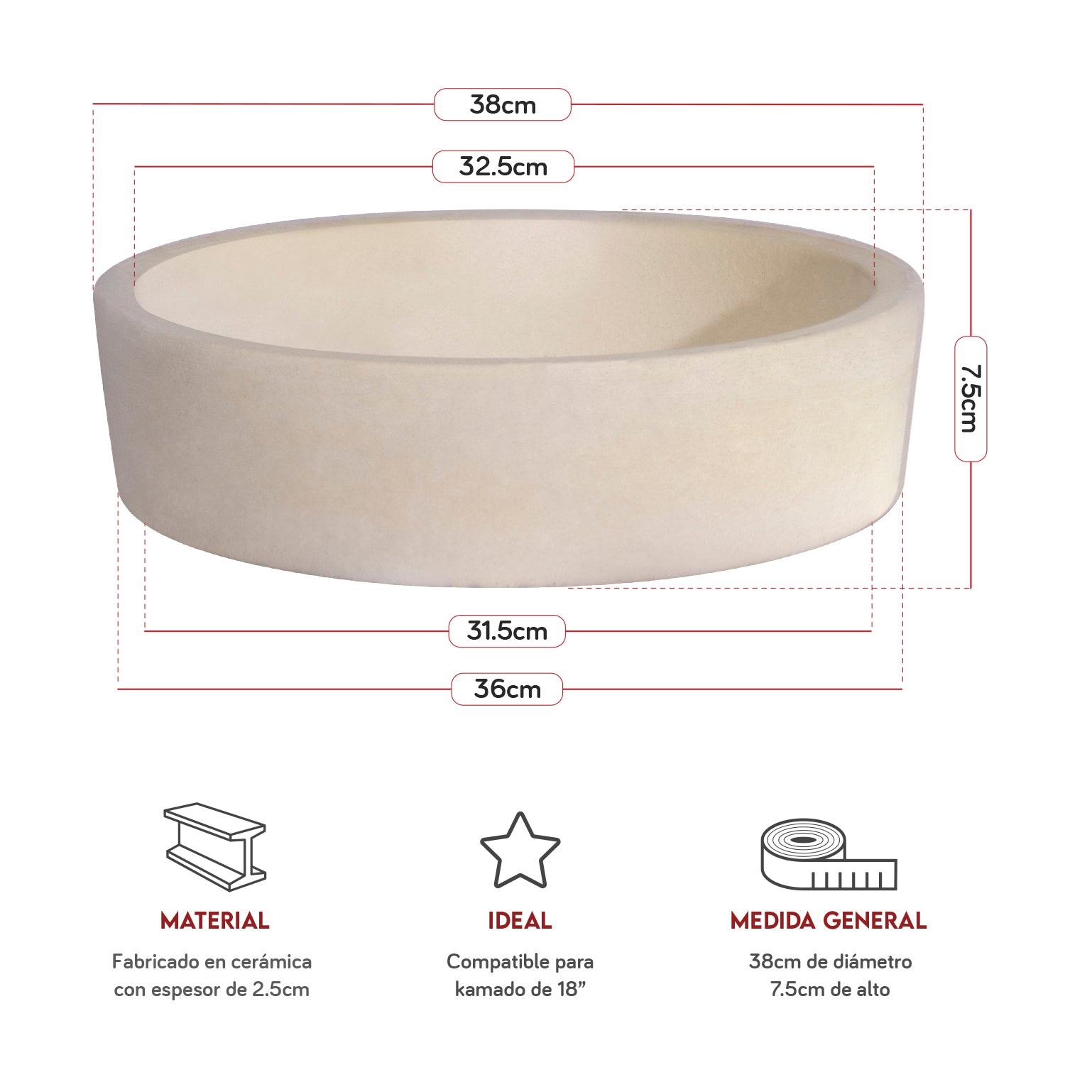 Este aro de fuego cerámico es el accesorio de repuesto para tu asador cerámico kamado. Fabricado con cerámica de alta calidad, este aro de fuego asegura una distribución uniforme del calor, permitiendo que las brasas se quemen de manera más eficiente y controlada. Es la pieza ideal para reemplazar un aro dañado o desgastado y mantener tu asador funcionando como nueva. Su diseño resistente y duradero garantiza una larga vida útil y un rendimiento óptimo en cada cocción.