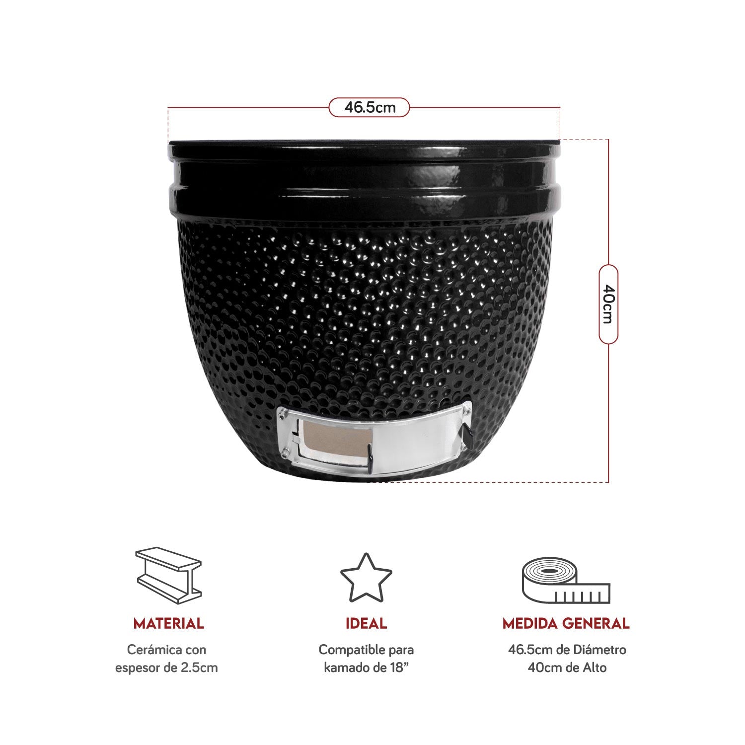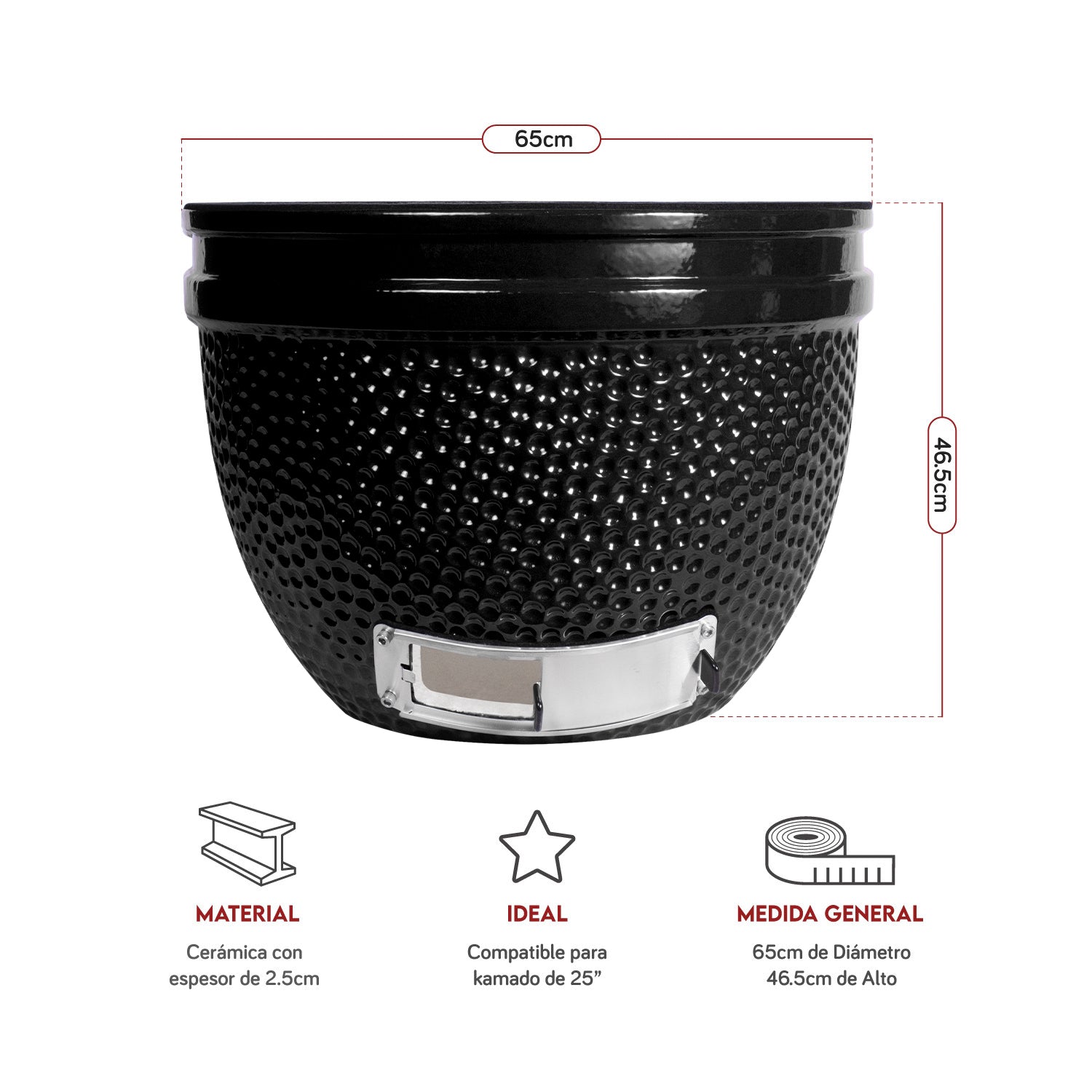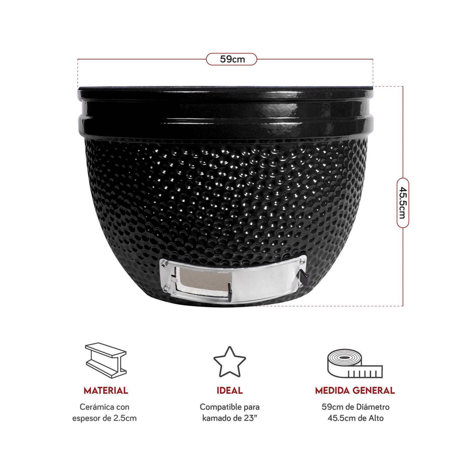 Revitaliza tu parrilla con esta base para kamado. Fabricada con cerámica de alta resistencia, esta pieza esencial es el cuerpo de tu parrilla, diseñada para mantener el calor de manera eficiente y ofrecerte un rendimiento superior en cada uso.