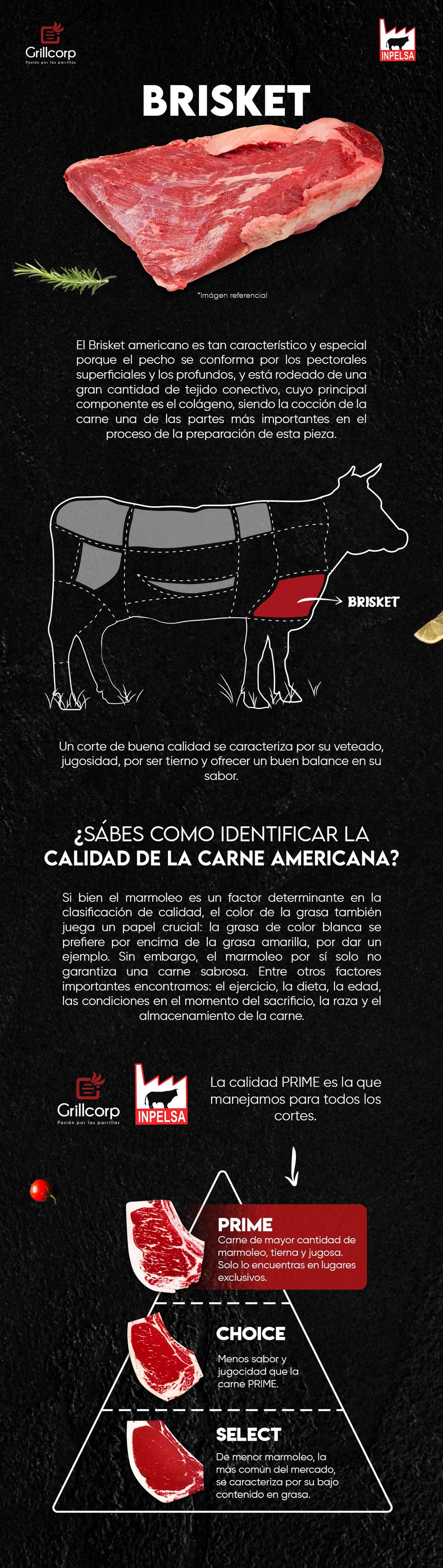 - Es un corte que se obtiene del pecho o pecho inferior, el Brisket es uno de los nueve cortes primarios de carne. Los músculos del Brisket incluyen los pectorales superficiales y profundos.