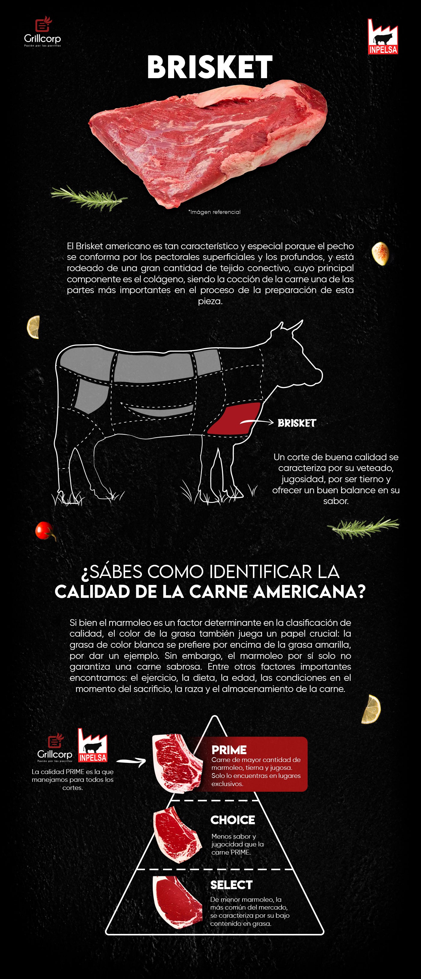El Brisket americano es tan característico y especial por que el pecho se conforma por los pectorales superficiales y los profundos, y está rodeado de una gran cantidad de tejido conectivo, cuyo principal componente es el colágeno, siendo la cocción de la carne una de las partes más importantes en el proceso de la preparación de esta pieza.