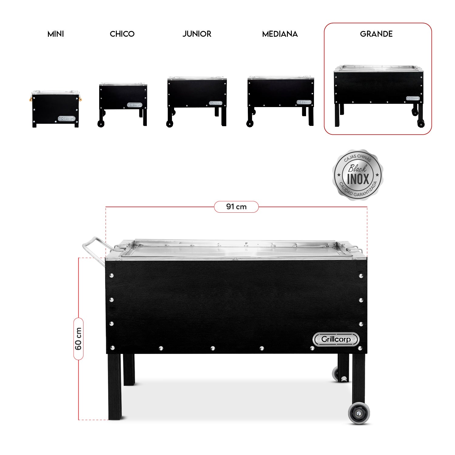 La bandeja para carbón de nuestra caja china está fabricada de acero galvanizado y reforzada con ángulos de fierro para mayor resistencia.