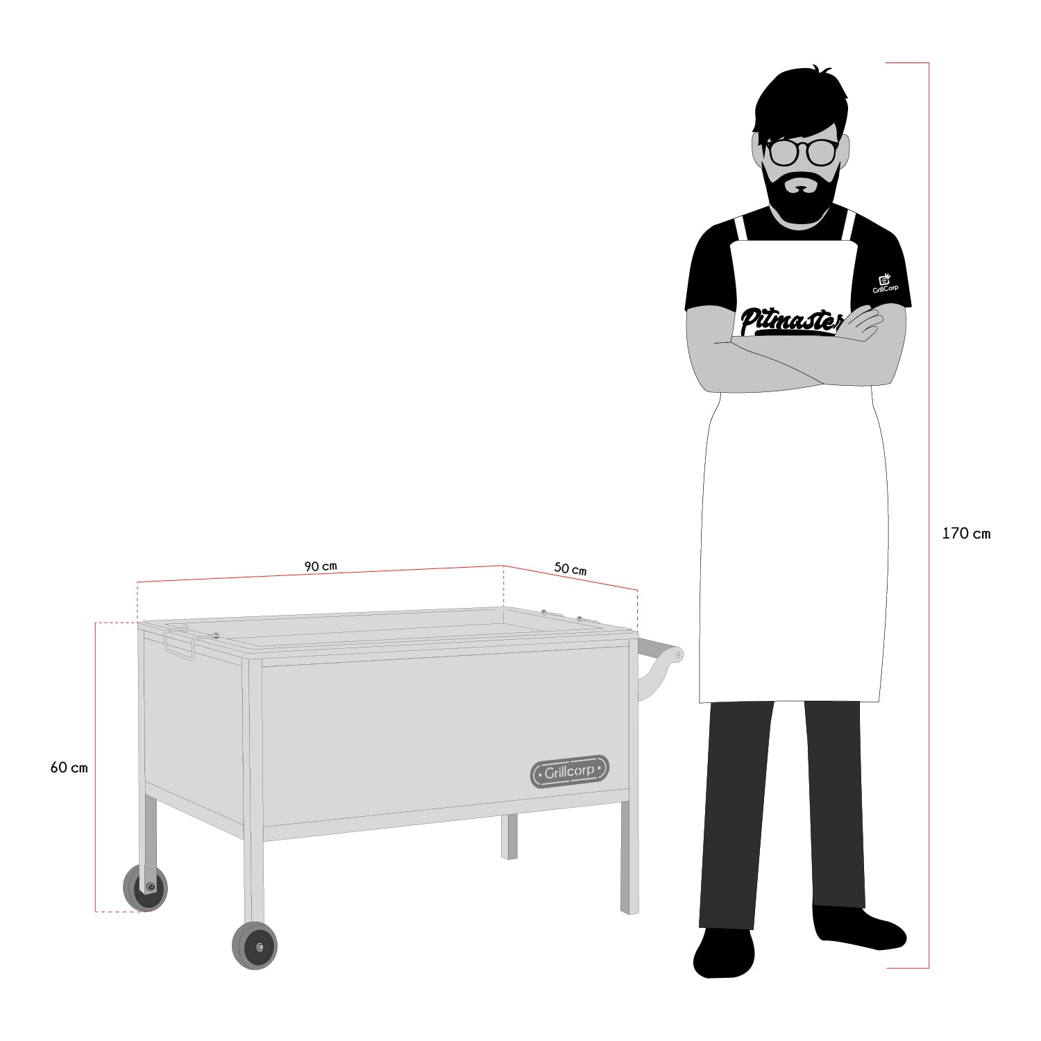 Con la ayuda del mango de acero inoxidable y sus dos ruedas, mueve tu caja para asar donde quieras de forma rápida y segura.
