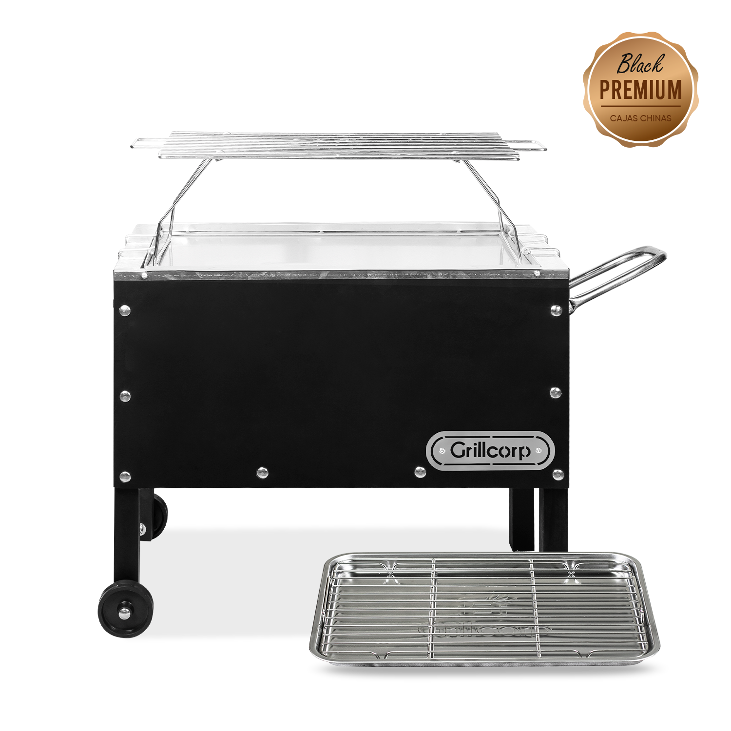 La bandeja para carbón de nuestra caja china está fabricada de acero galvanizado y reforzada con ángulos de fierro para mayor resistencia.
