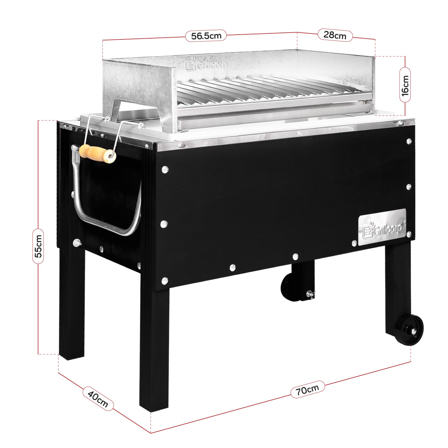 Con la ayuda del mango de acero inoxidable y sus dos ruedas, mueve tu caja para asar donde quieras de forma rápida y segura.