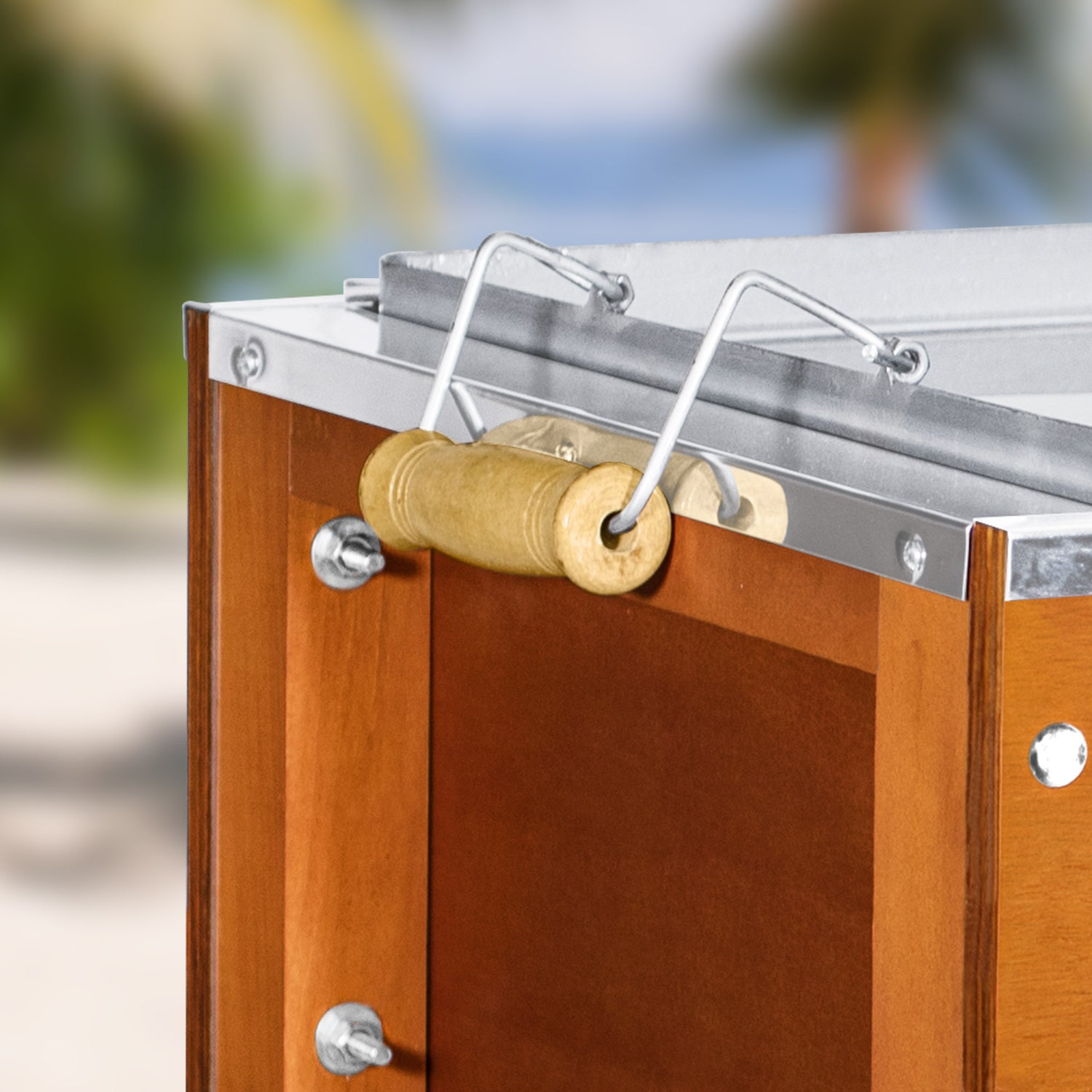 Con la ayuda del mango de acero inoxidable y sus dos ruedas, mueve tu caja para asar donde quieras de forma rápida y segura.