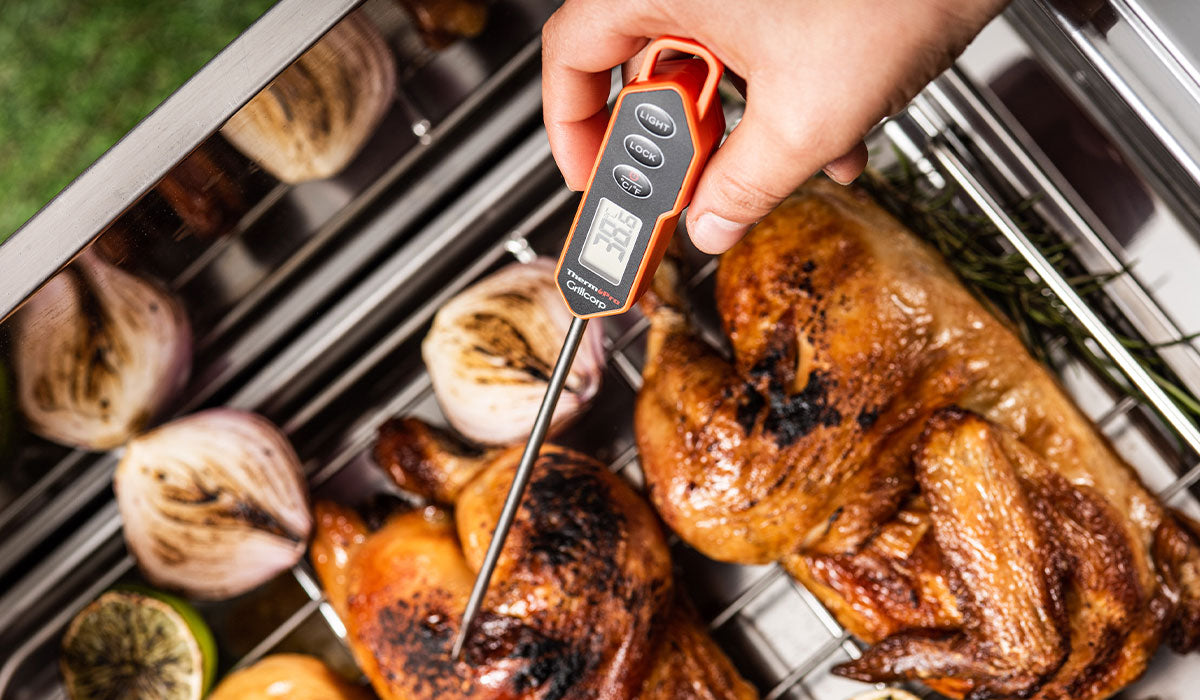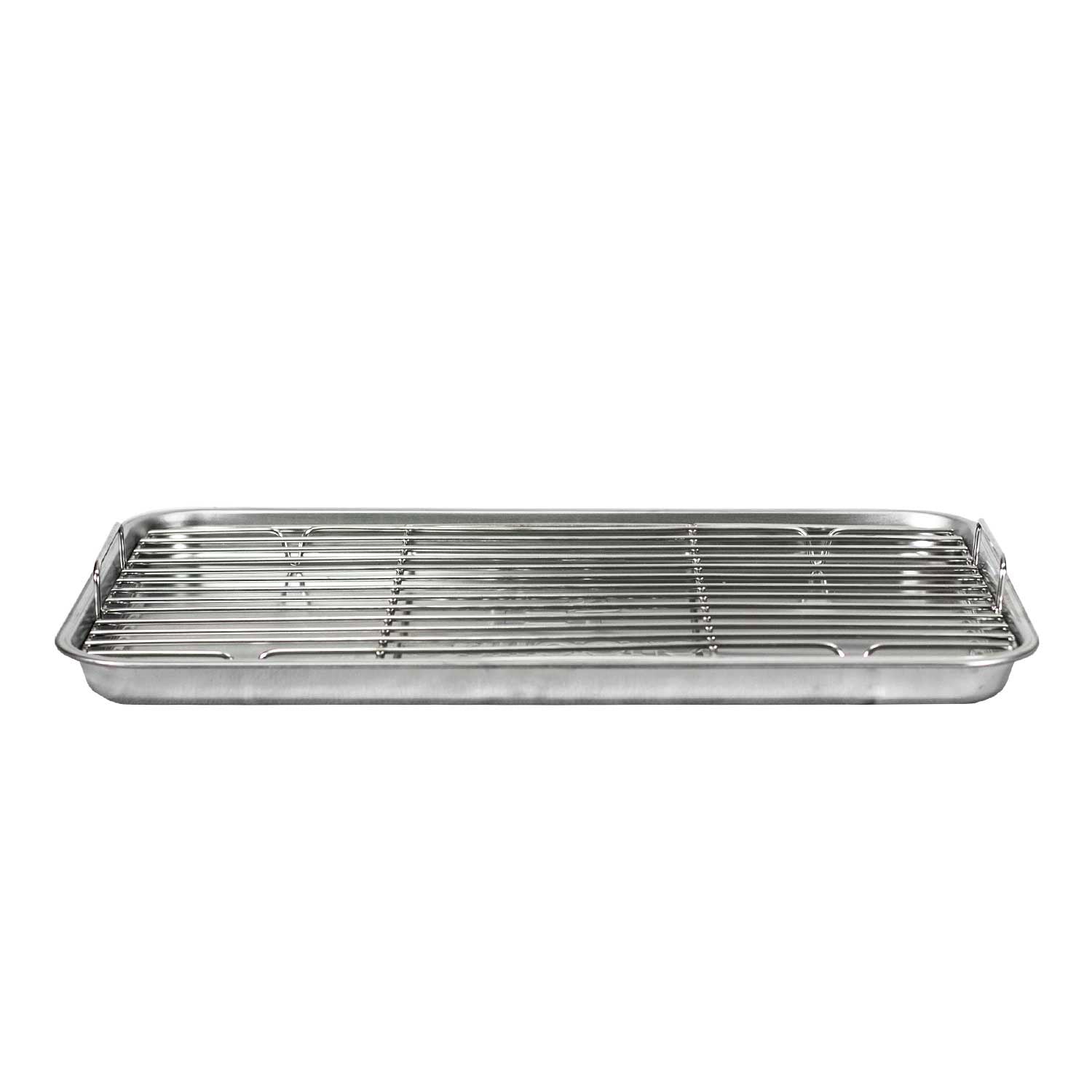 Coloque sus carnes en la parrilla de acero inoxidable y deje que los jugos se acumulen en la bandeja de jugo de acero inoxidable, para que sus comidas no pierdan sabor y permanezcan jugosas.