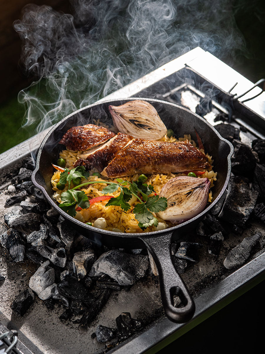 Además, la caja para asar está reforzada con pernos de 1/4" lo que significa que la caja no pierde calor al cocinar.