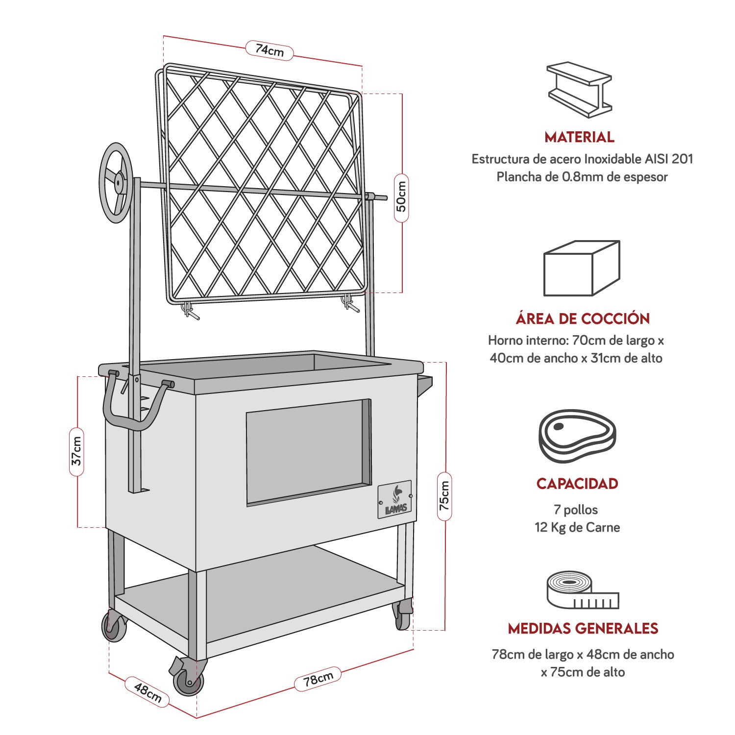 ✅ Capacidad para 7 pollos o 12 kilos de carne.