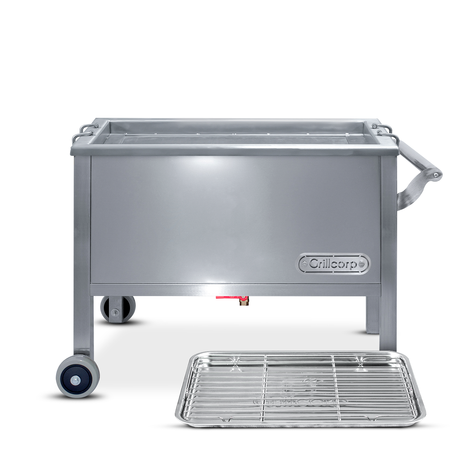 Con la ayuda del mango de acero inoxidable y sus dos ruedas, mueve tu caja para asar donde quieras de forma rápida y segura.