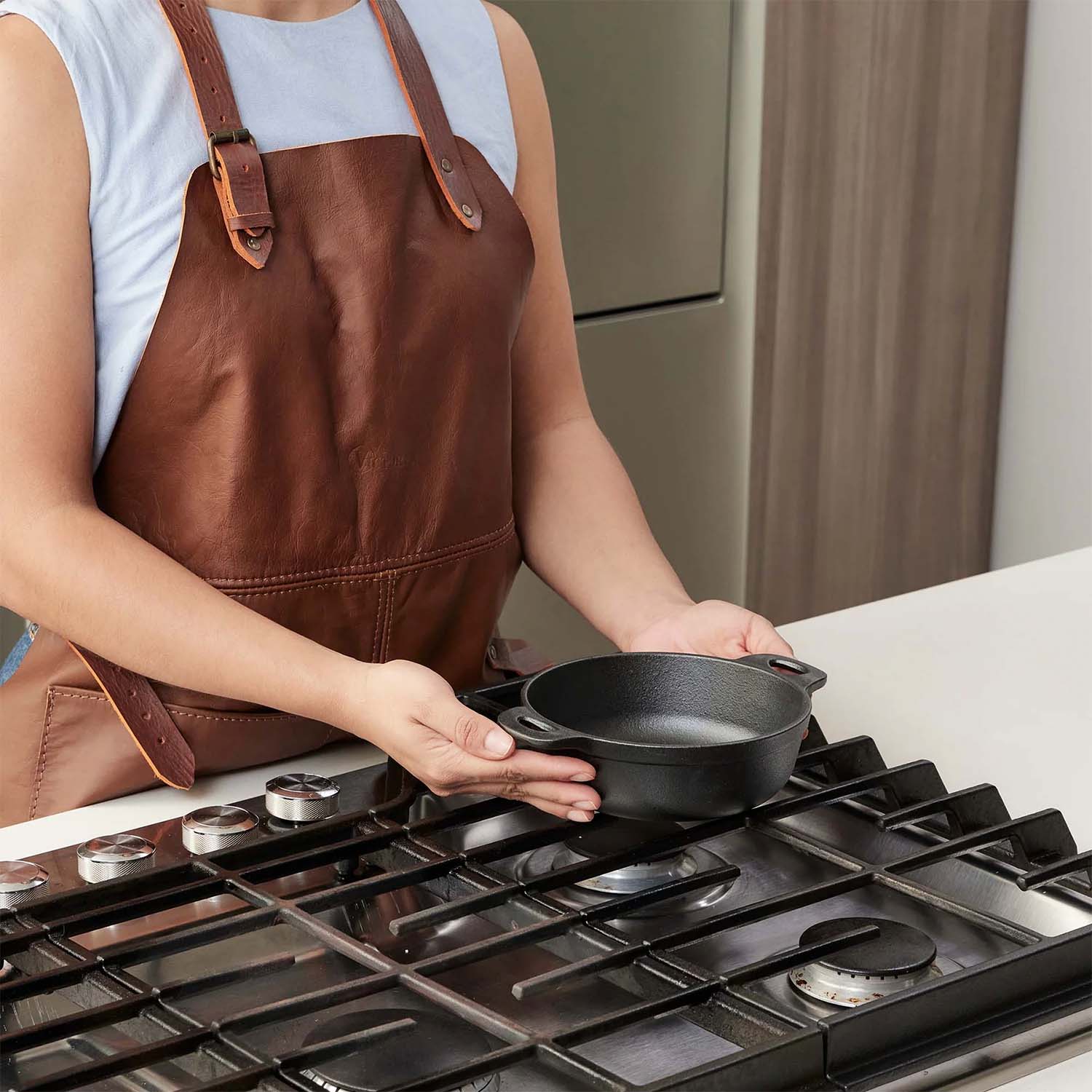 El hierro fundido retiene y distribuye el calor de forma pareja, lo que garantiza una cocción uniforme, ideal para sellar carnes, dorar vegetales o preparar salsas.