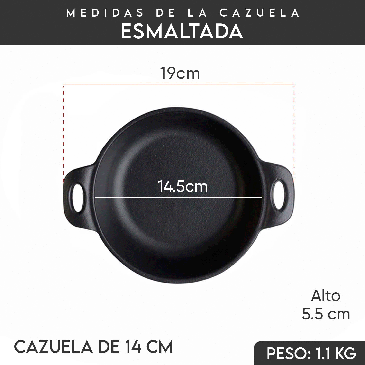 Nuestra cazuela de hierro fundido de 14 cm Pre curado o esmaltada, lleva las sopas, cremas y otros a un siguiente nivel, las mantendrá calientes durante mucho más tiempo al precalentarse o prepararse directamente en ella, ya que la podrás llevar directamente del fogón a la mesa. Además, sorprende a todos los comensales con su hermoso diseño exclusivo.
