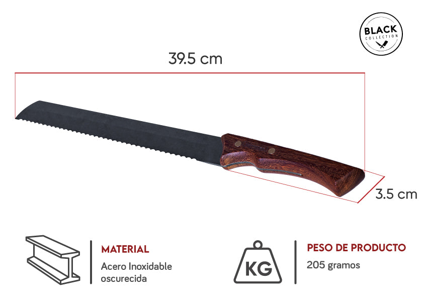 Ideal para cortar su brisket asado con precisión y perfección para su familia y amigos, cuente con el cuchillo dentado Tramontina Churrasco con lámina de acero inoxidable oscurecido y mango de madera de 10 pulgadas. Con un excelente poder de corte y alta resistencia, posee una lámina de acero inoxidable oscurecido y mango de madera fijado con remaches, lo cual hace que sea un cuchillo robusto y de alta calidad.