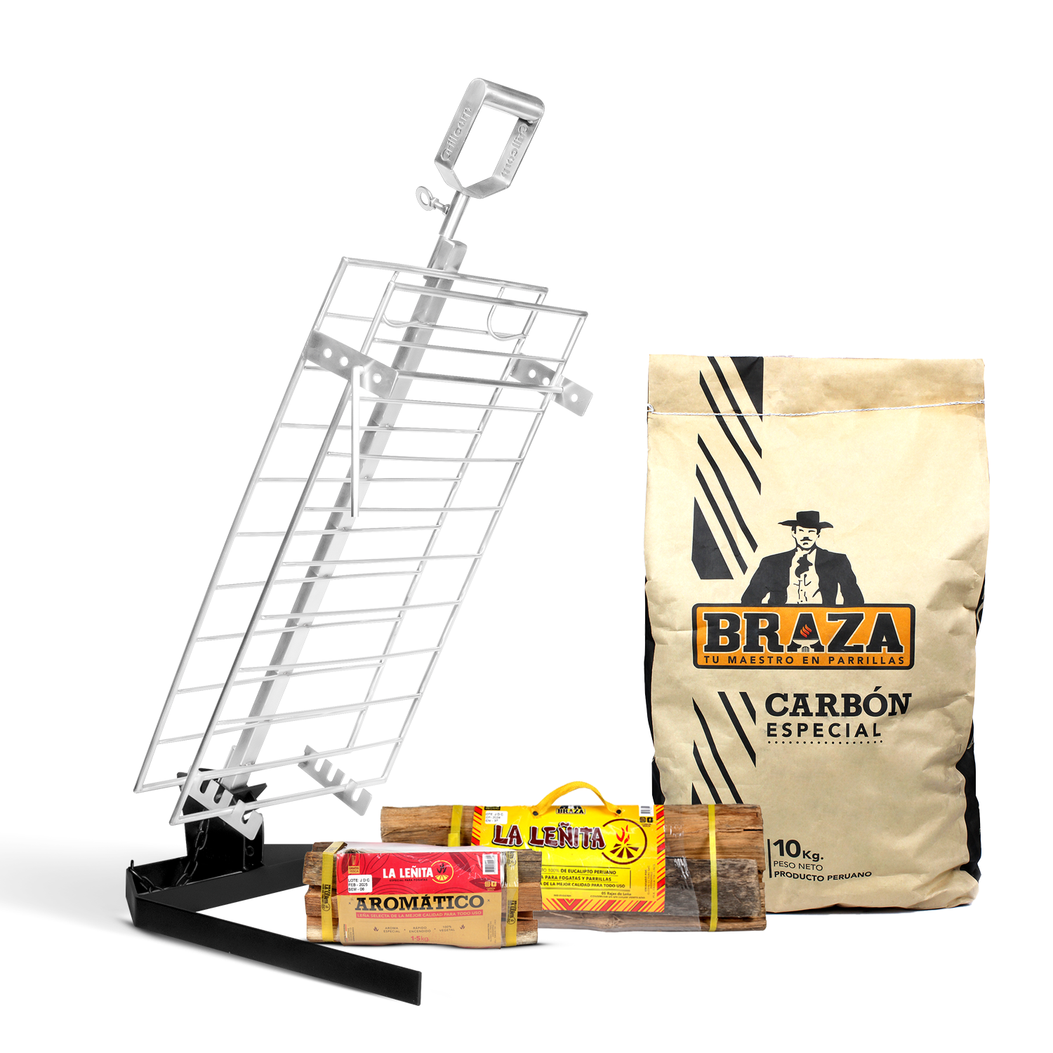 Combo Estaca Inoxidable 60 x 40 cm + Pack carbón y leña