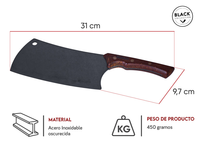 La hachuela Tramontina Churrasco Black con lámina de acero inoxidable oscurecido y mango de madera de 7 pulgadas lo ayudará en las difíciles tareas de romper y separar los huesos de la carne. Fabricada con lámina de acero inoxidable oscurecida y mango de madera con remaches, son características que ofrecen alta resistencia y durabilidad. ¡La cuchilla también posee un estilo diferente y le agregará más belleza a su momento!