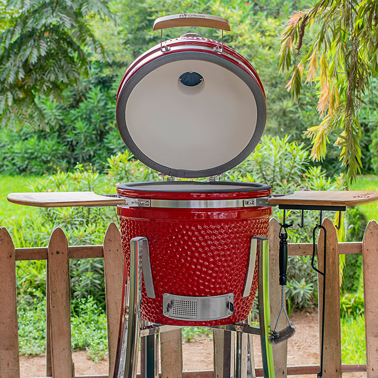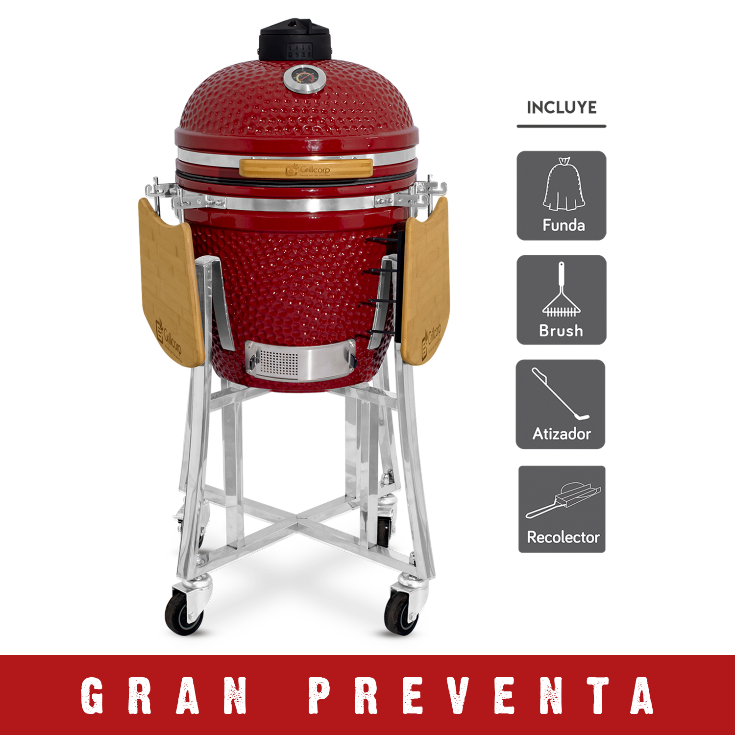 La línea de kamados Grillcorp, ofrece un equipo multifuncional que cumple el papel de parrilla, asador, ahumador; destacando por encima de cualquier otro aparato de cocción. Su gran capacidad de absorción, retención y emisión del calor, optimiza su funcionamiento y el tiempo de vida de combustibles como briqueta, carbón, leña, entre otros. Es por eso que el kamado se convierte en una herramienta muy flexible para cocinar con diversos tipos y niveles de calor. Cocine carnes, prepare panes y pasteles, deliciosas pizzas o todo lo que quieras cocinar, este asador tan versátil como profesional.
