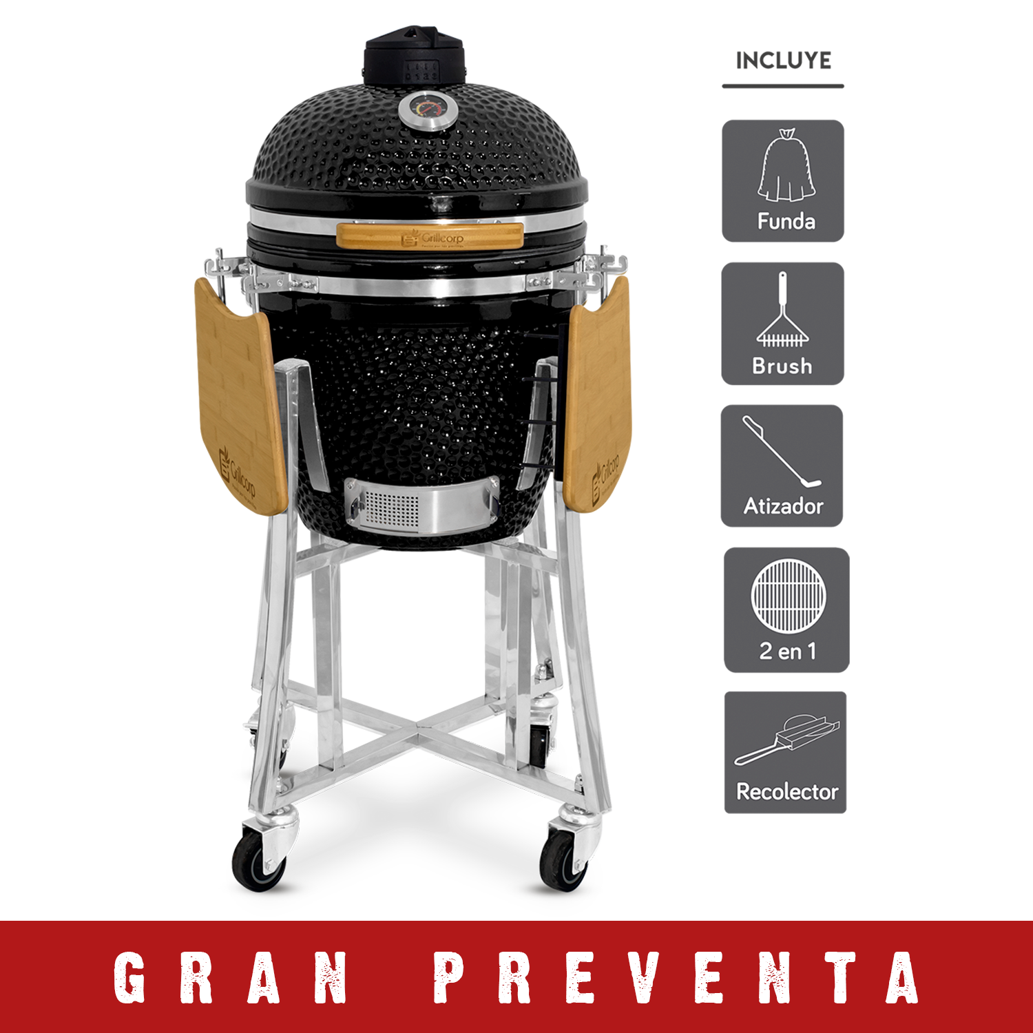La línea de kamados Grillcorp, ofrece un equipo multifuncional que cumple el papel de parrilla, asador, ahumador; destacando por encima de cualquier otro aparato de cocción. Su gran capacidad de absorción, retención y emisión del calor, optimiza su funcionamiento y el tiempo de vida de combustibles como briqueta, carbón, leña, entre otros. Es por eso que el kamado se convierte en una herramienta muy flexible para cocinar con diversos tipos y niveles de calor. Cocine carnes, prepare panes y pasteles, deliciosas pizzas o todo lo que quieras cocinar, este asador tan versátil como profesional.