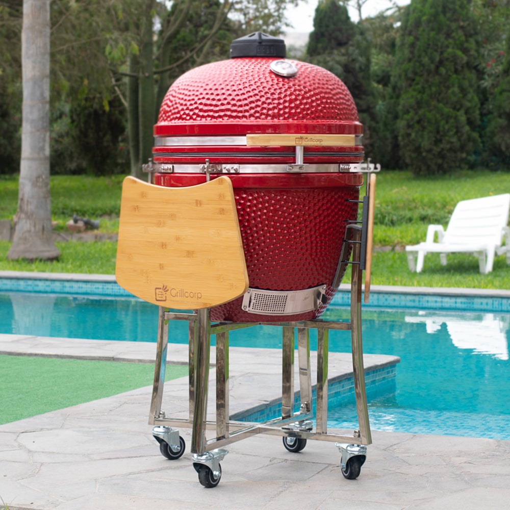 La línea de kamados Grillcorp, ofrece un equipo multifuncional que cumple el papel de parrilla, asador, ahumador; destacando por encima de cualquier otro aparato de cocción. Su gran capacidad de absorción, retención y emisión del calor, optimiza su funcionamiento y el tiempo de vida de combustibles como briqueta, carbón, leña, entre otros. Es por eso que el kamado se convierte en una herramienta muy flexible para cocinar con diversos tipos y niveles de calor. Cocine carnes, prepare panes y pasteles, deliciosas pizzas o todo lo que quieras cocinar, este asador tan versátil como profesional.