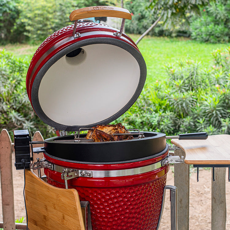 Para 2 a 4 personas, el kamado de 15" funciona bien. Si cocinas para grupos más grandes (6 o más), recomendamos un modelo mediano o grande, entre ellas están los kamado de 18" hasta el kamado de 27". También es importante considerar el espacio disponible: si tienes una terraza pequeña, un Kamado 15" o de 18" será ideal.