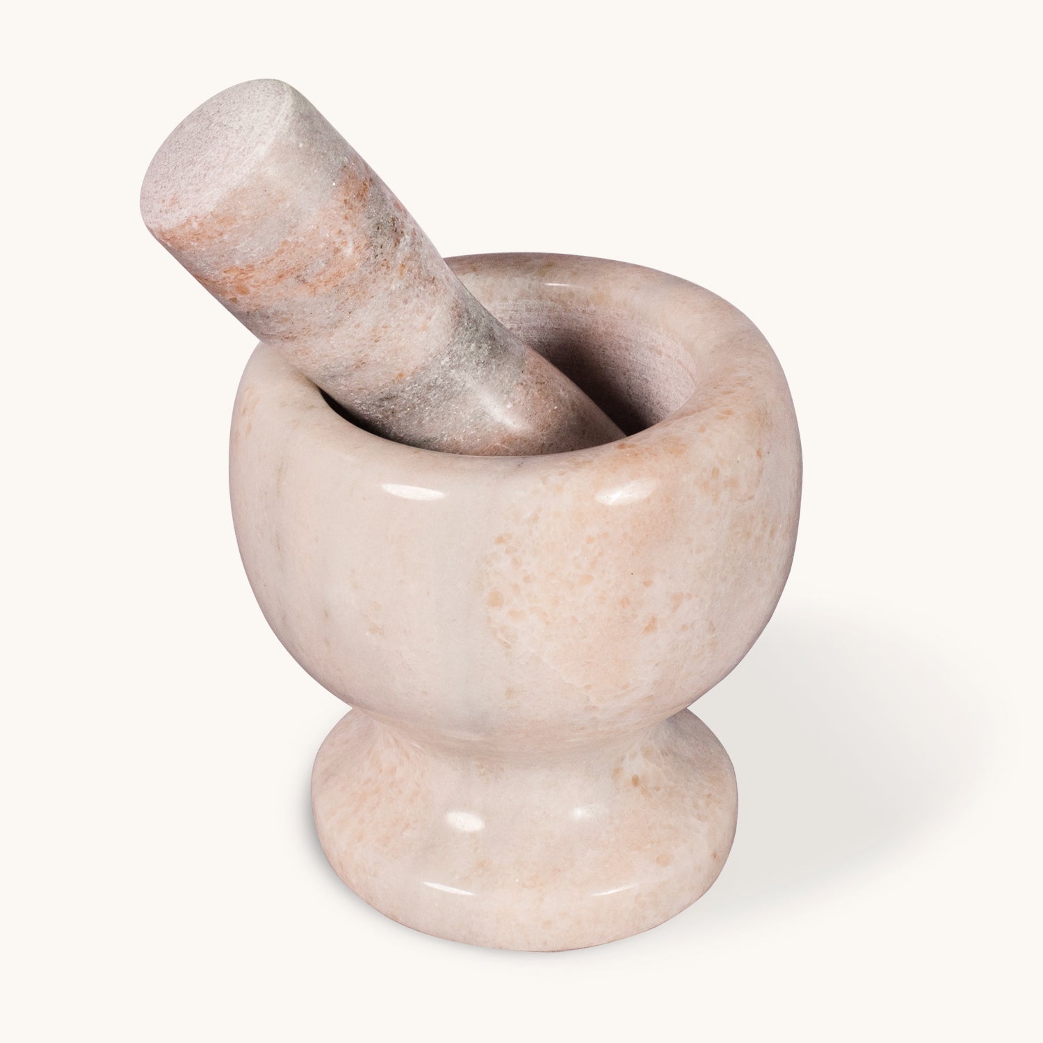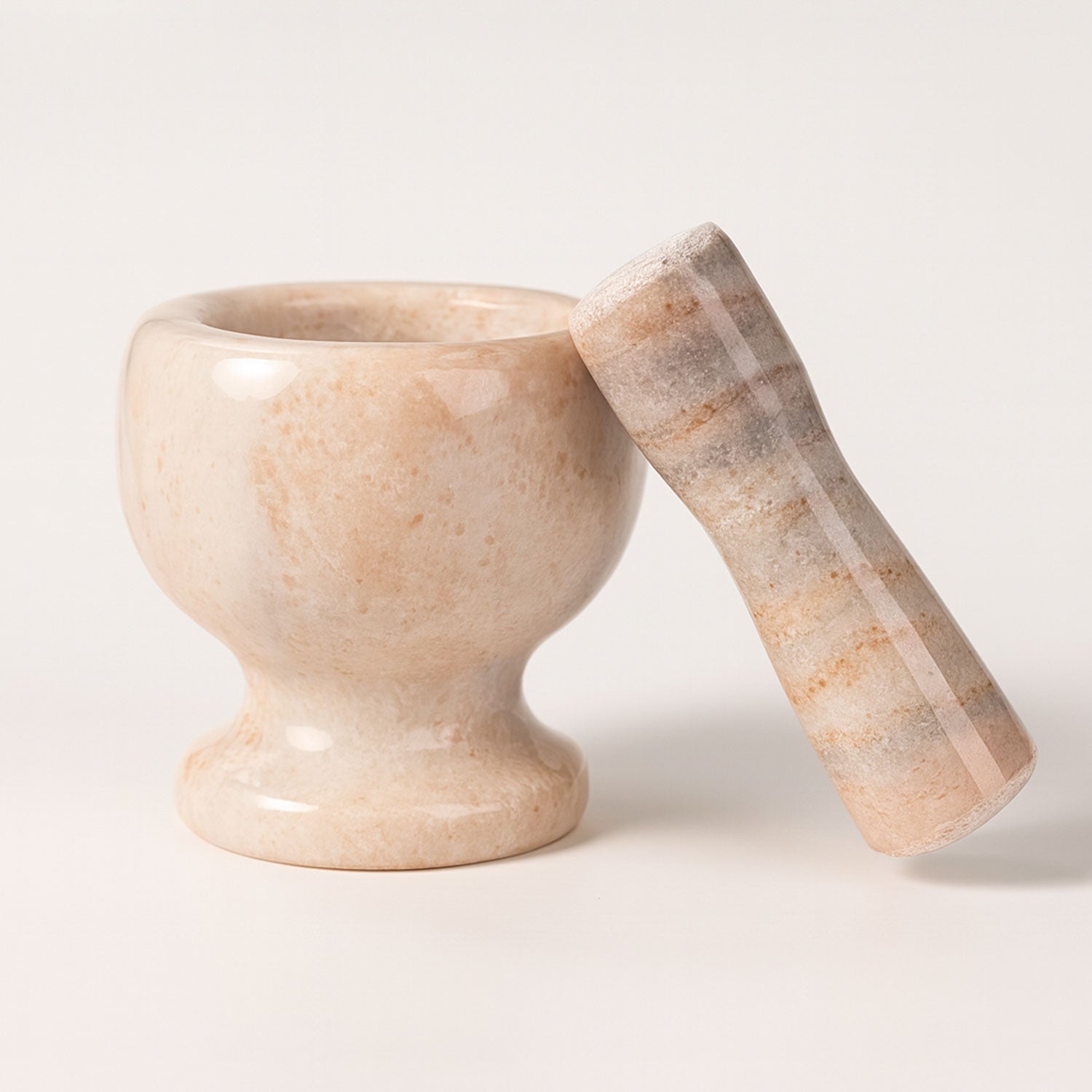El mortero de mármol es la herramienta ideal para quienes disfrutan de una cocina auténtica y de sabores intensos. Su diseño robusto y elegante permite moler especias, hierbas, granos y semillas de manera uniforme, preservando aromas y potenciando el sabor natural de cada preparación. Fabricado en mármol natural, ofrece resistencia, durabilidad y un estilo sofisticado que realza cualquier cocina.