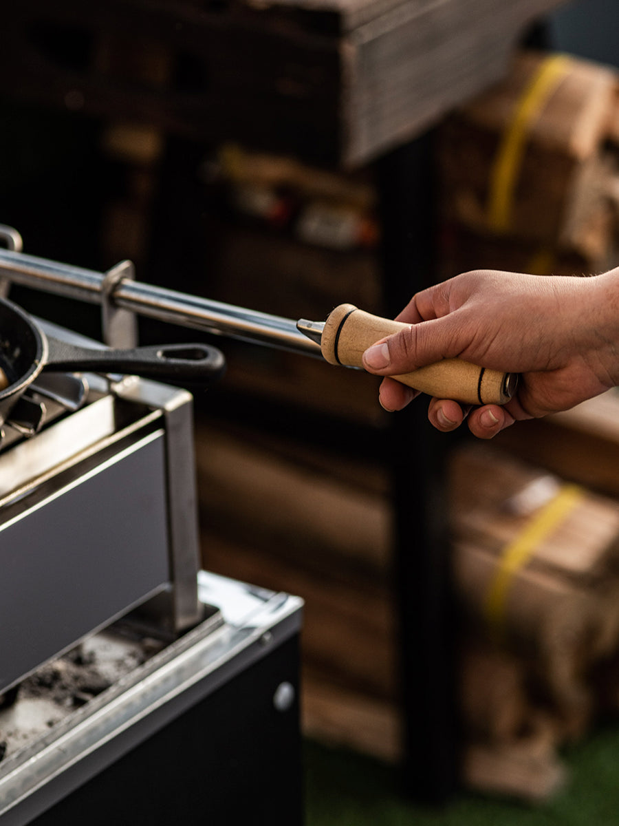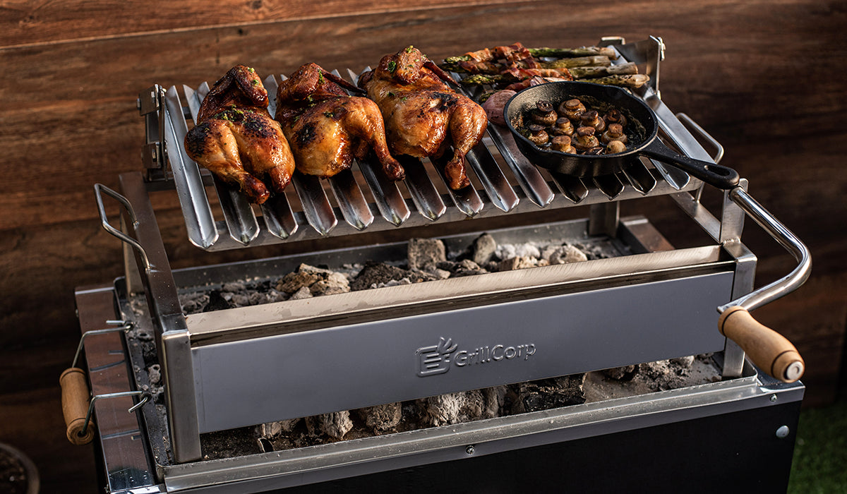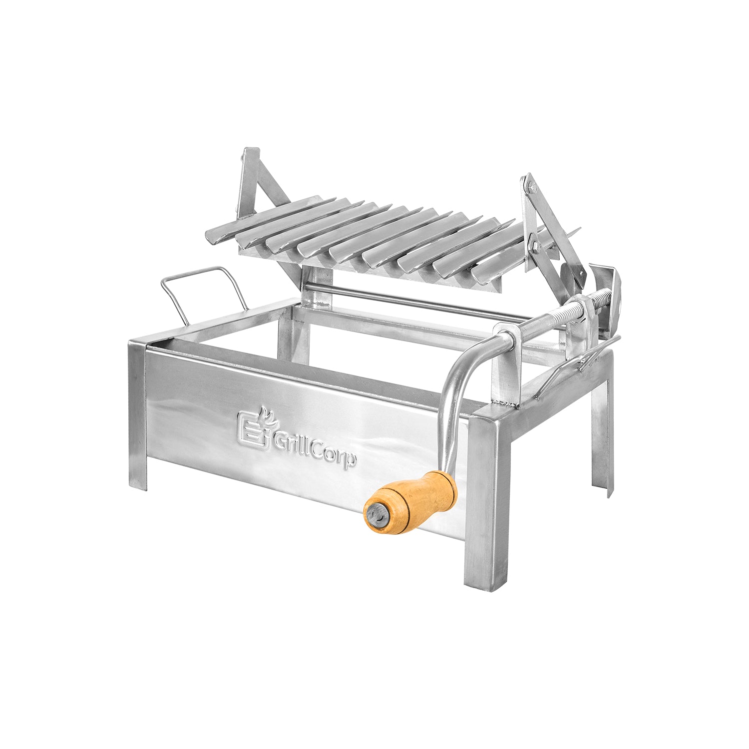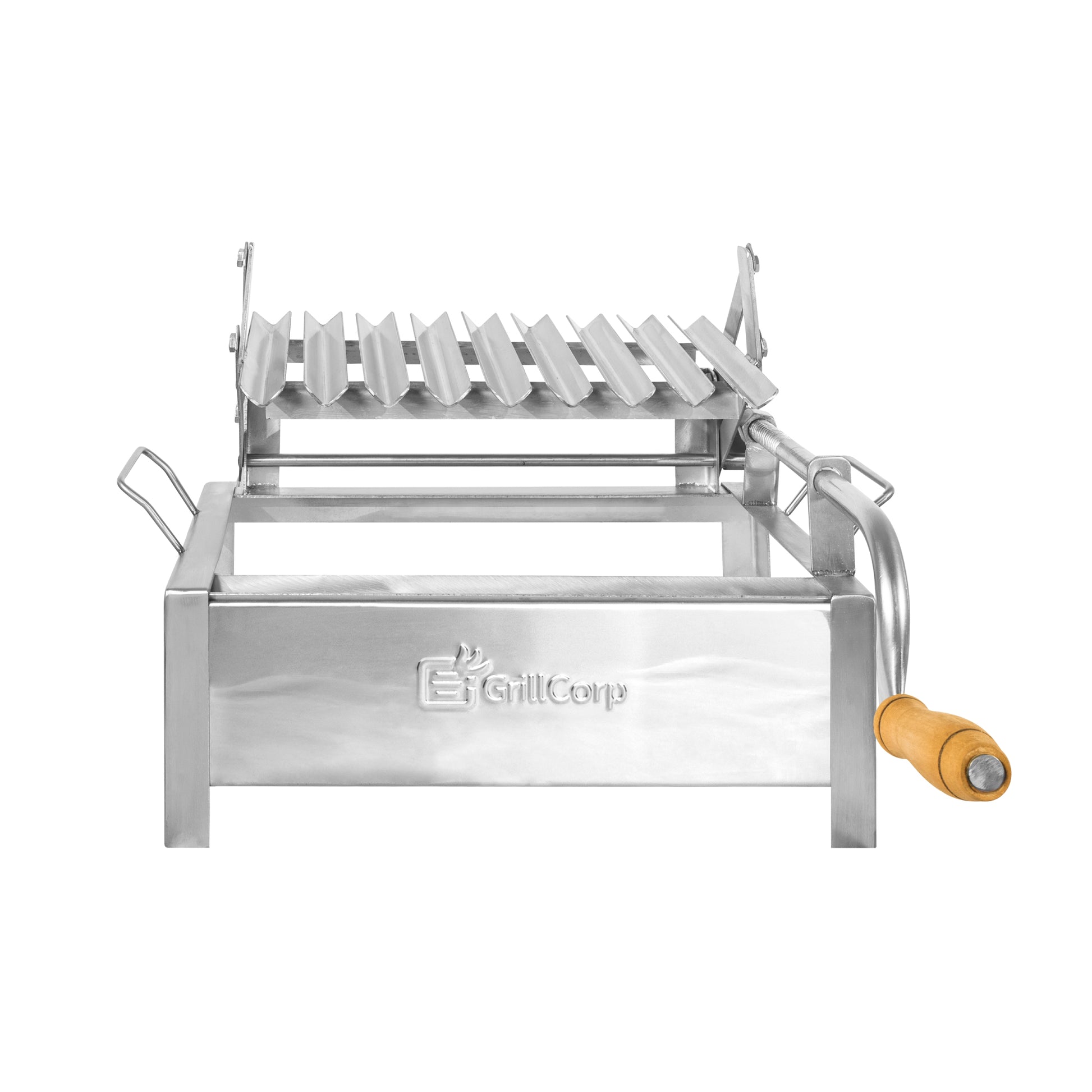 Cocina tus carnes y guarniciones con diferentes tiempos de cocción y temperaturas gracias al sistema de elevación, simplemente gira el mango y aléjalo o acercálo al fuego directo tanto como quieras o como te indique tu receta.