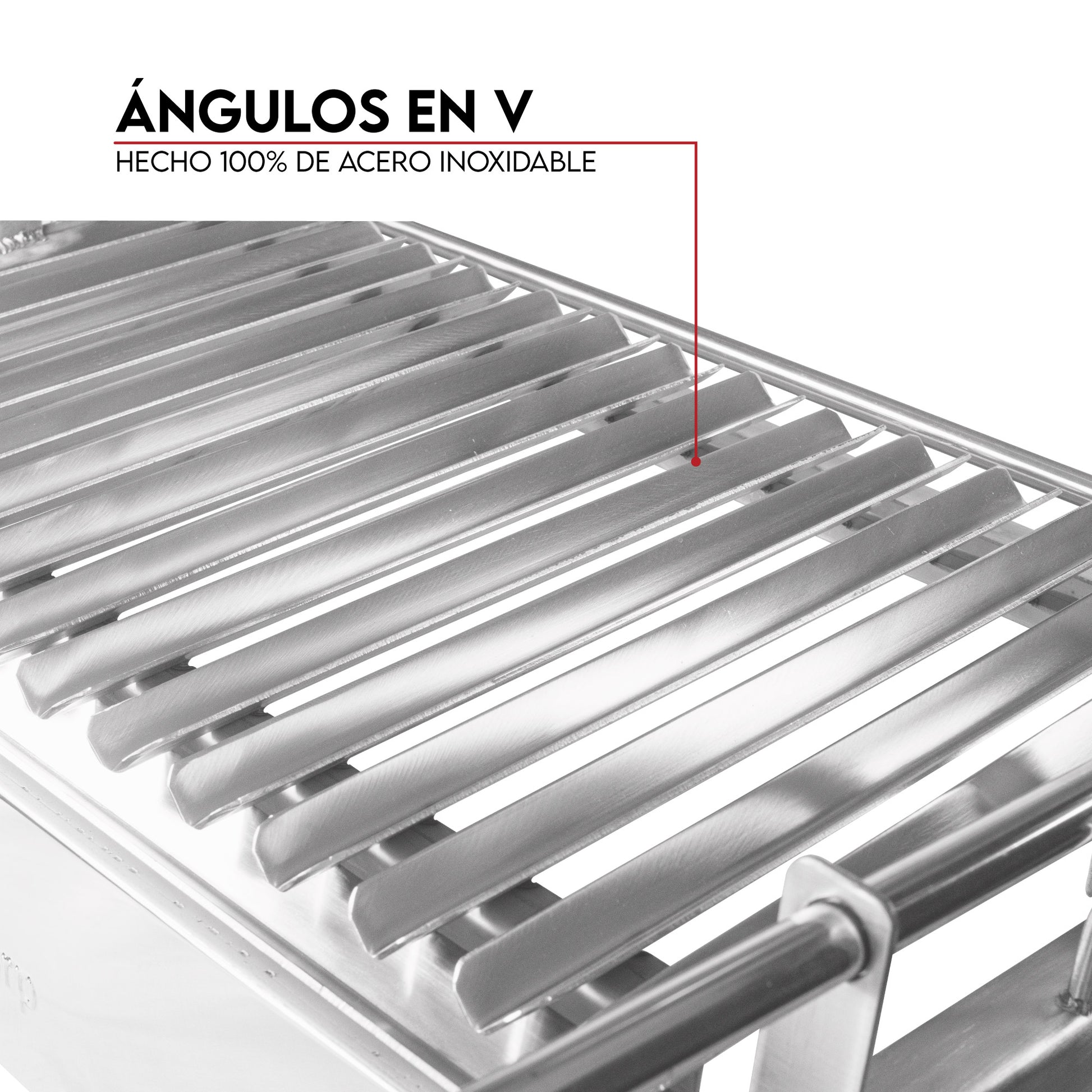 🔥 PLACA FRONTAL DE ACERO: Mantén tu carbón encendido durante la cocción gracias a la placa frontal de la parrilla que impide el paso de aire que puede apagar la parrilla. Fabricado en acero con un acabado elegante.