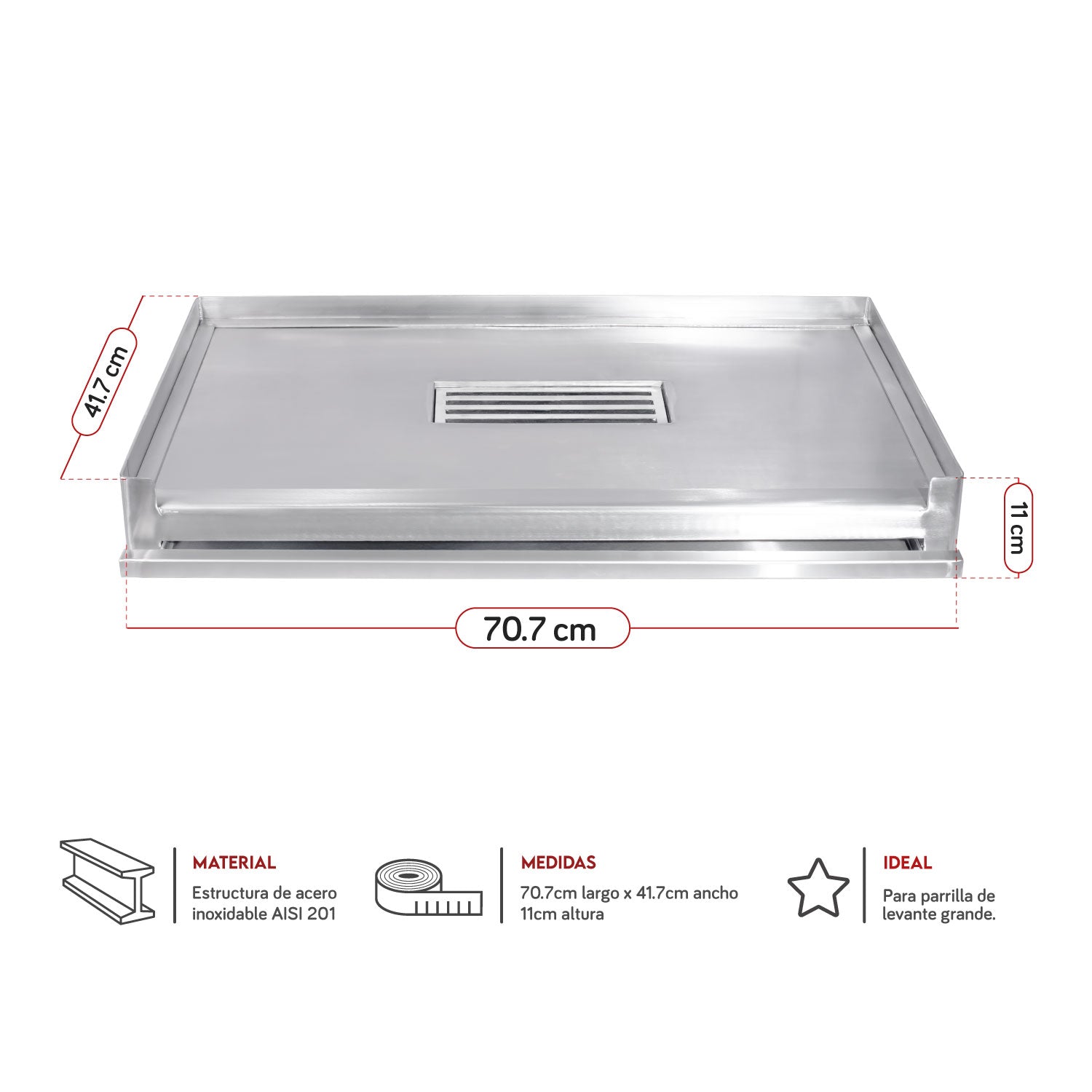 Parrilla Empotrable con sistema de levante Inoxidable Grande 40cm x 69cm