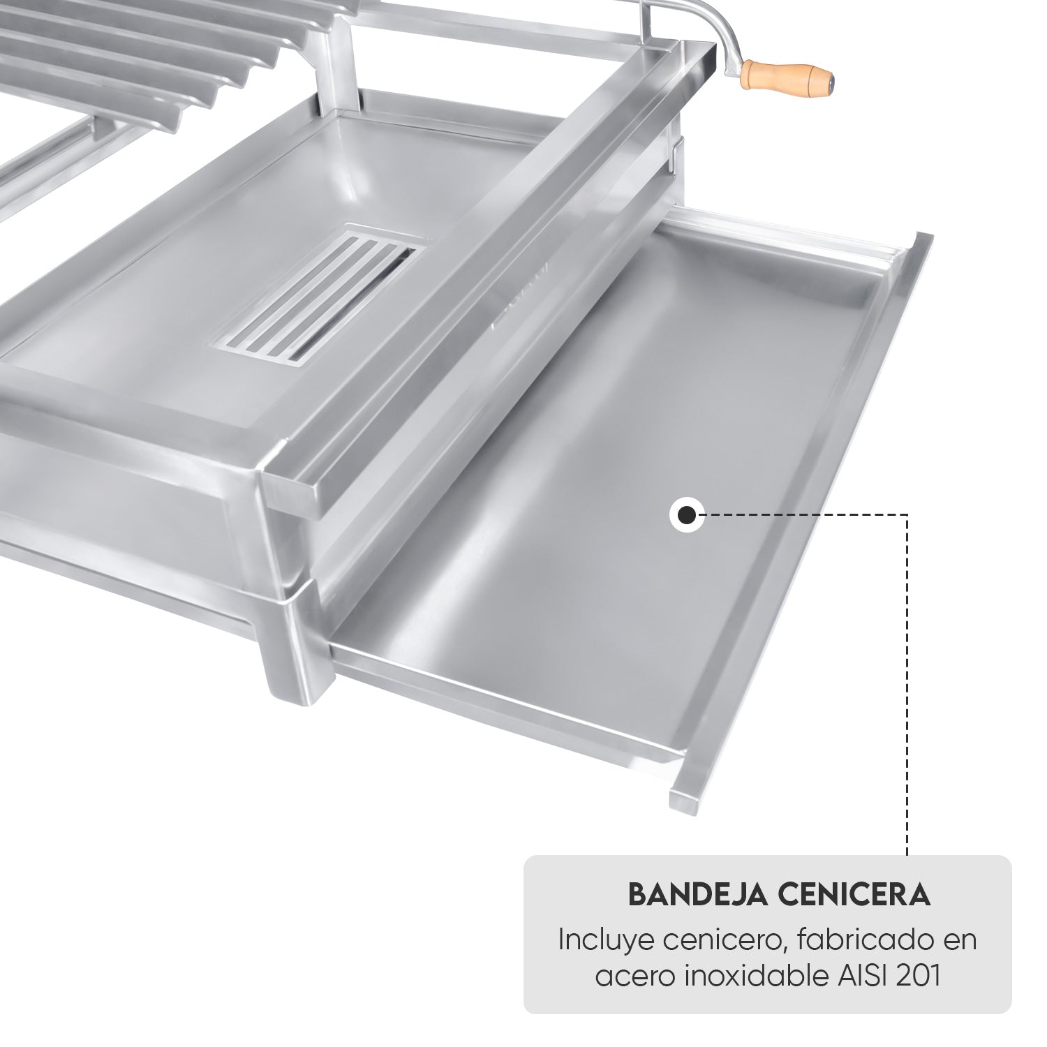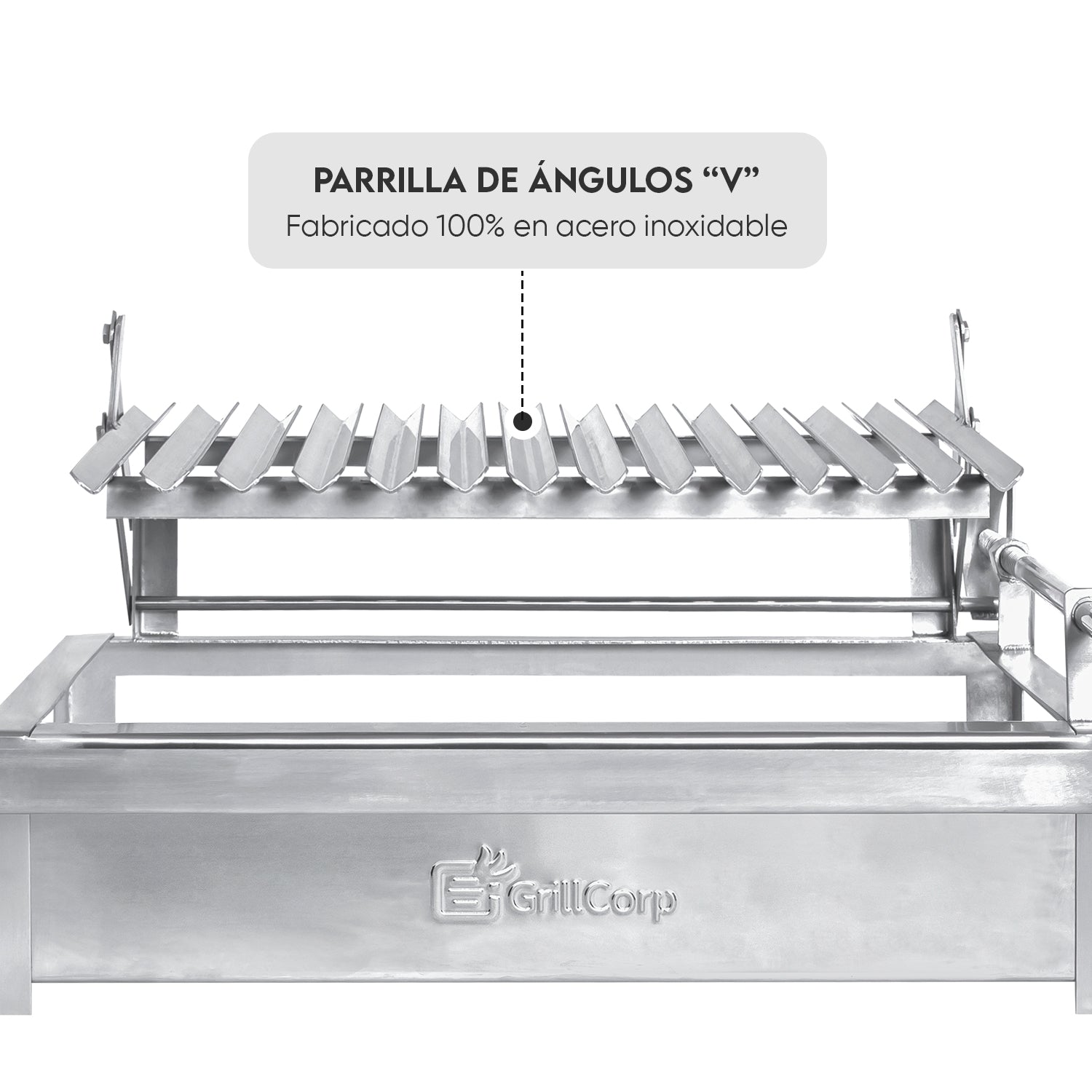 Cocina tus carnes y guarniciones con diferentes tiempos de cocción y temperaturas gracias al sistema de elevación, simplemente gira el mango y aléjalo o acercálo al fuego directo tanto como quieras o como te indique tu receta.