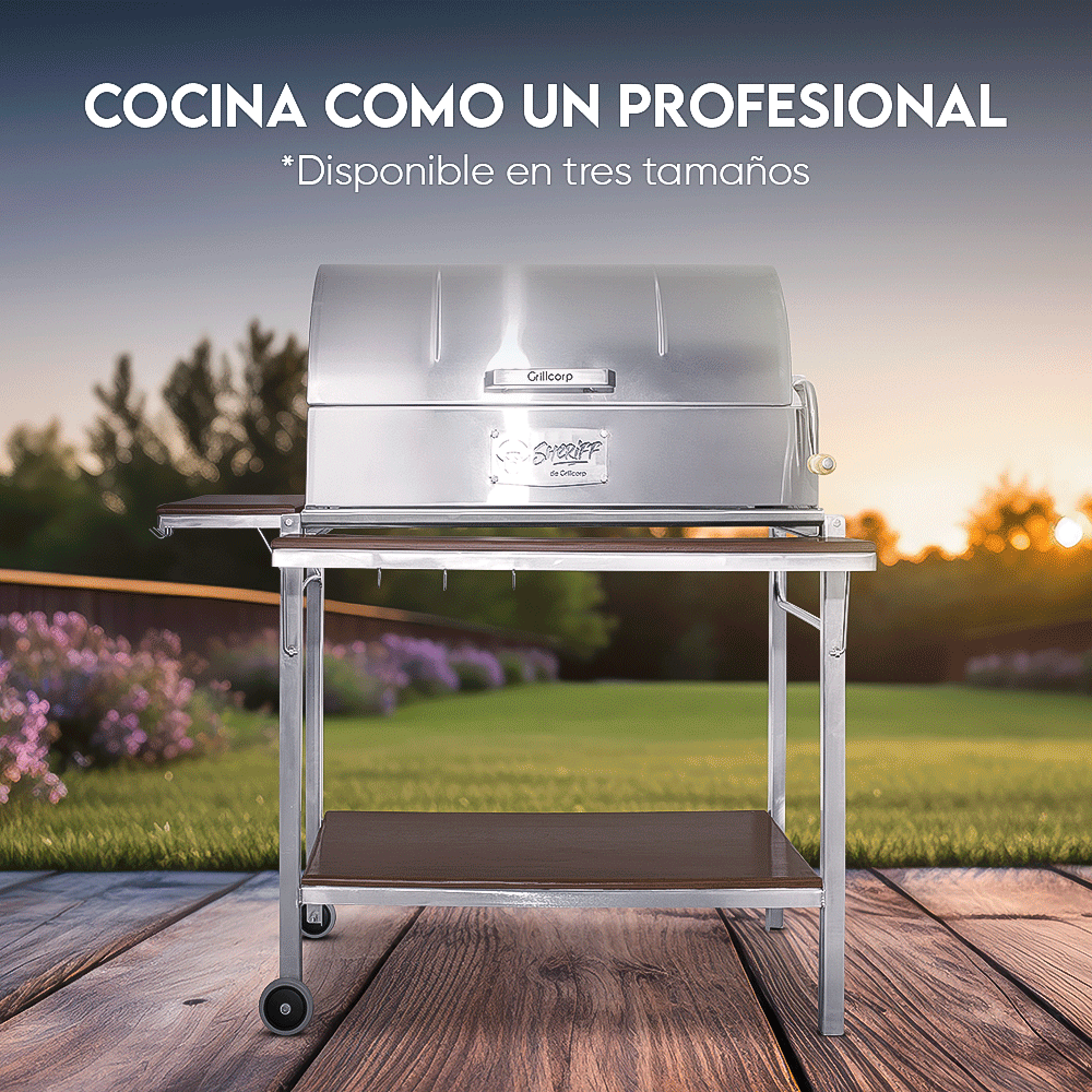Descubre la nueva y renovada parrilla modelo Tambor con parrilla de ángulo y estructura hecha de acero inoxidable, ademas cuenta con doble mesa de apoyo y una tapa para realizar ahumados e infinidades de deliciosas recetas. Encienda el carbón y disfrute de comidas sanas y bajas en grasa en poco tiempo obteniendo como resultado carnes jugosas y con un aroma inigualable. Reúnase junto a su familia, amigos y pase un agradable momento junto a Grillcorp.