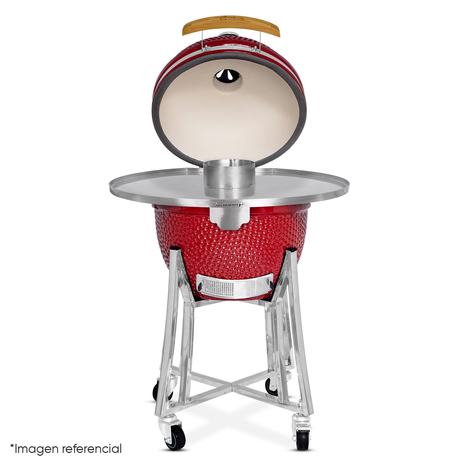 Su construcción robusta no solo garantiza durabilidad, sino que ofrece una superficie de cocción uniforme. El diseño inteligente incluye un fogón central elevado, ideal para colocar sartenes o un wok directamente sobre la fuente de calor, mientras que su borde perimetral evita que los jugos se derramen, manteniendo tu Kamado impecable.