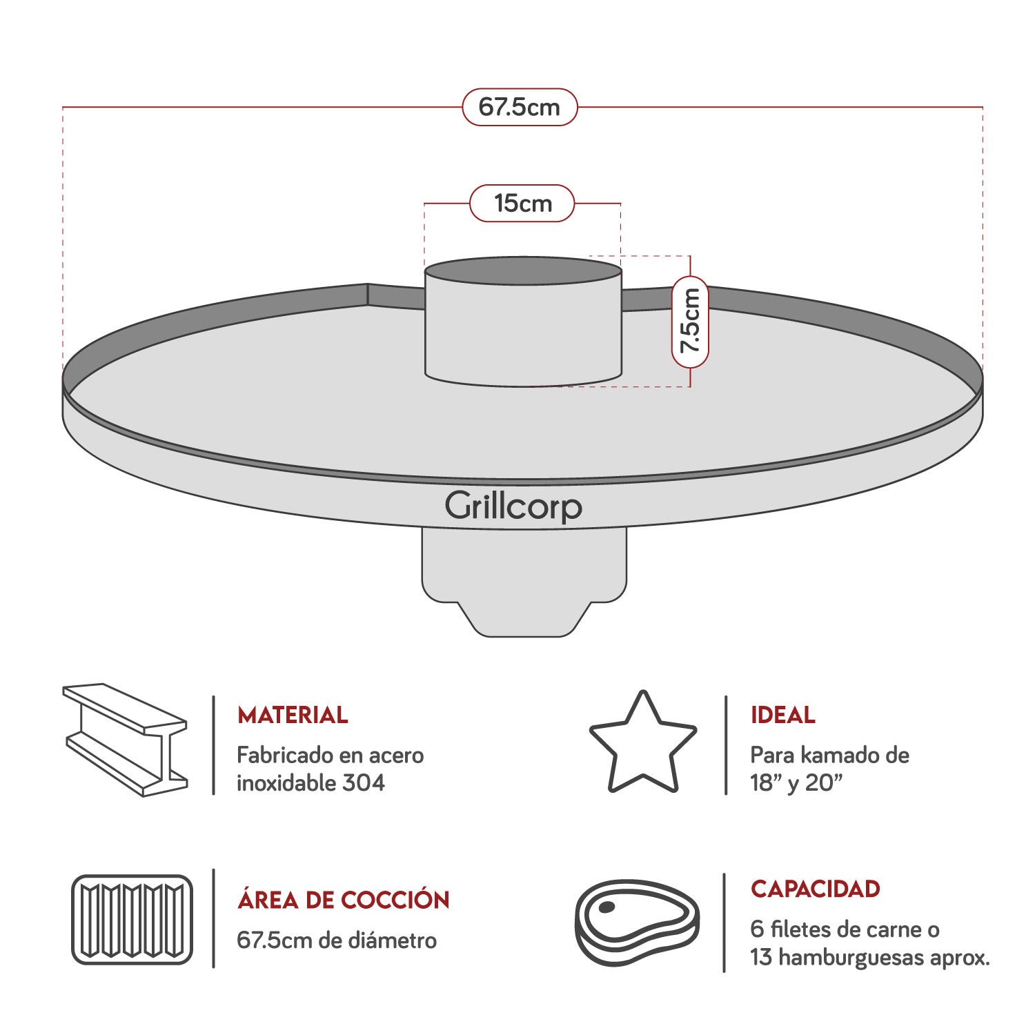 Transforma tu Kamado en una estación de cocina profesional con la Plancha Redonda de Acero Inoxidable de Grillcorp. Diseñada específicamente para encajar a la perfección y maximizar el calor de tu parrilla cerámica, esta plancha te permite cocinar desde cortes delicados y vegetales hasta platillos al estilo oriental.