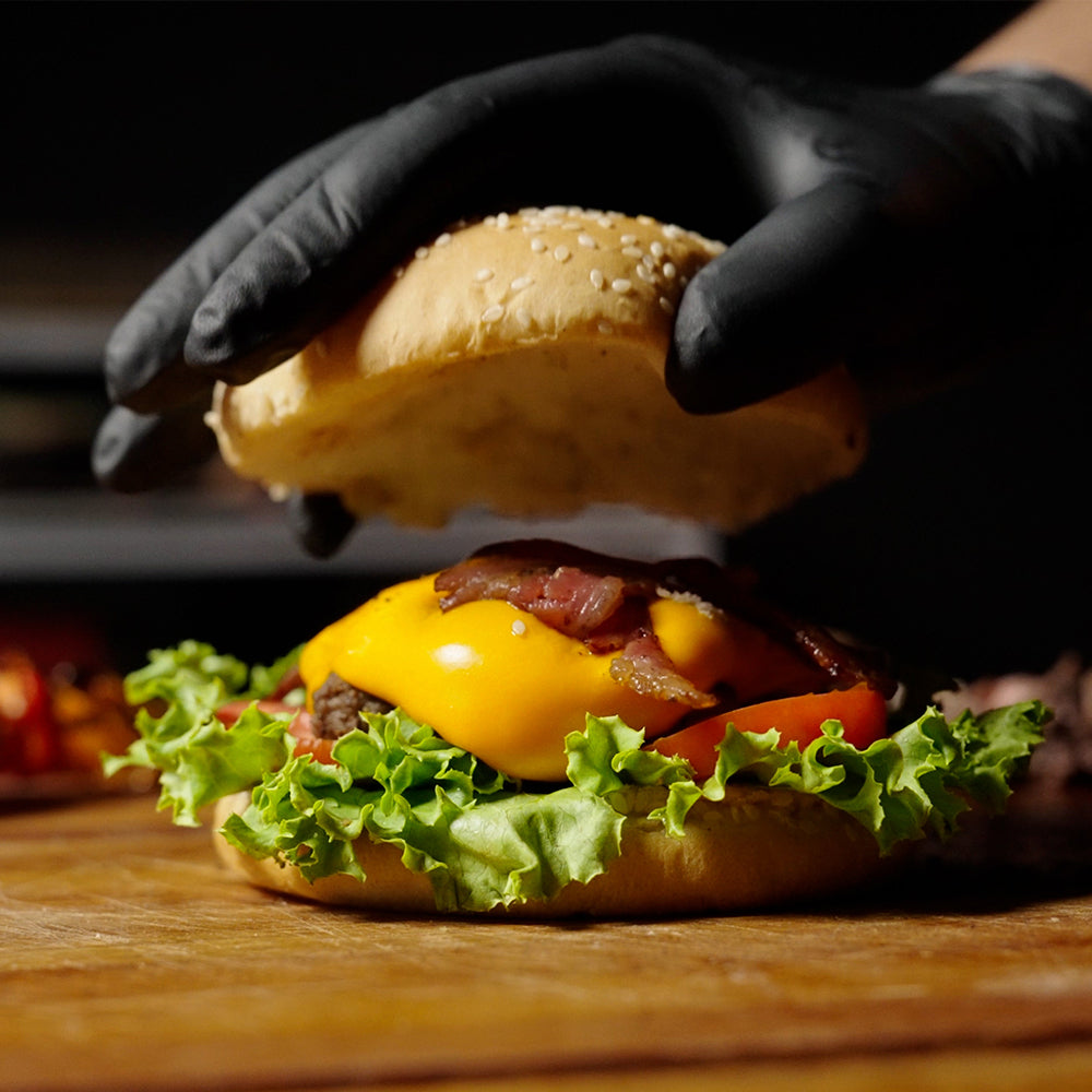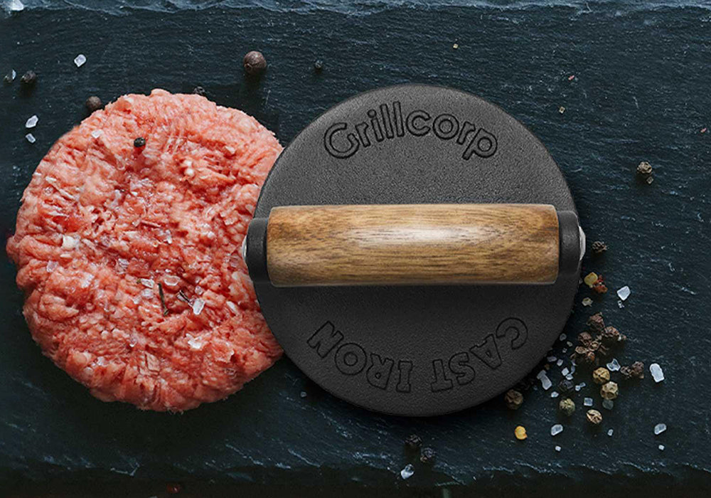 Saque al experto en hamburguesas que tiene en su interior con nuestra exclusiva prensa de parrilla de hierro fundido. Altamente resistente y versátil, puede usarlo para carne, pollo,etc.