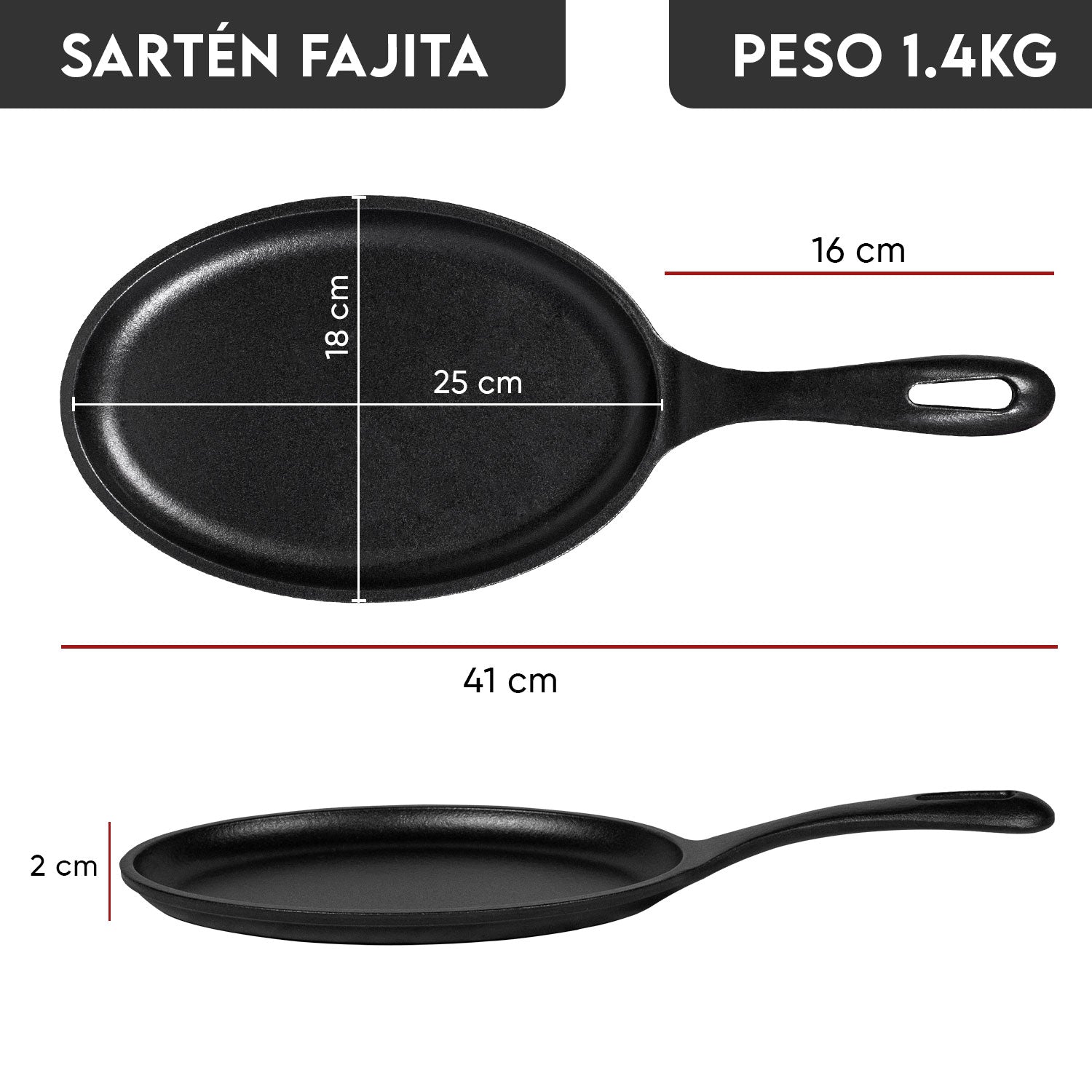 Este sartén no solo es funcional, también es una herramienta de presentación impresionante. Su forma ovalada y estilizada permite servir directamente desde la cocina a la mesa, manteniendo los alimentos calientes durante más tiempo y con ese efecto chisporroteante que enamora los sentidos.