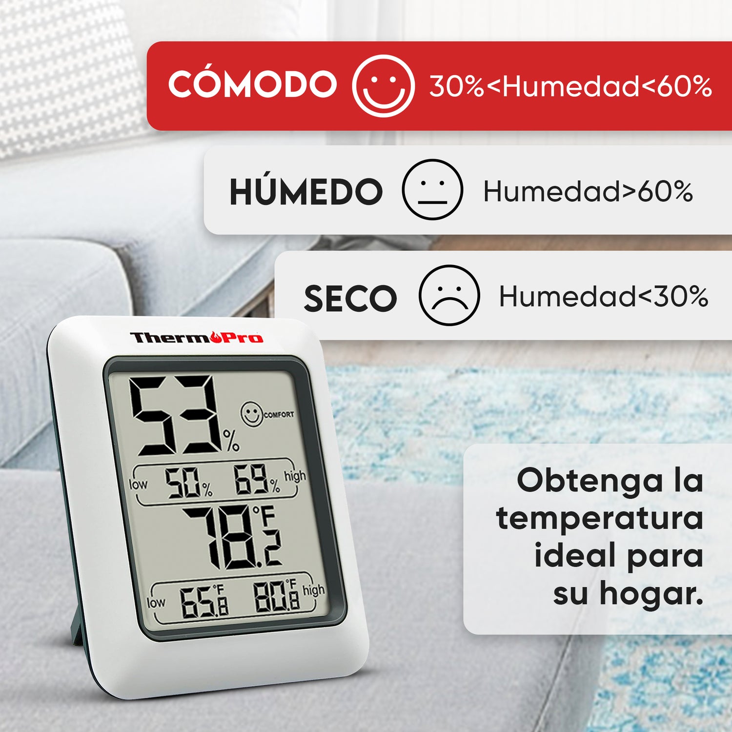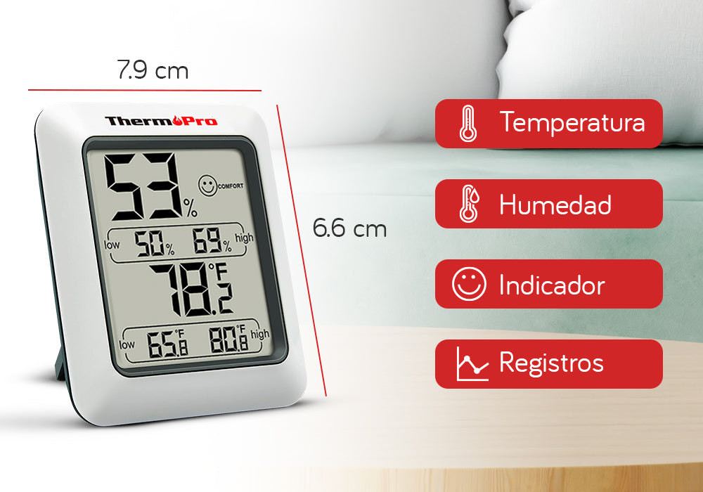 Con lecturas de temperatura y humedad de alta precisión y un amplio rango de medición, el termómetro TP50 es el dispositivo doméstico perfecto para optimizar las condiciones de vida para usted y su familia.