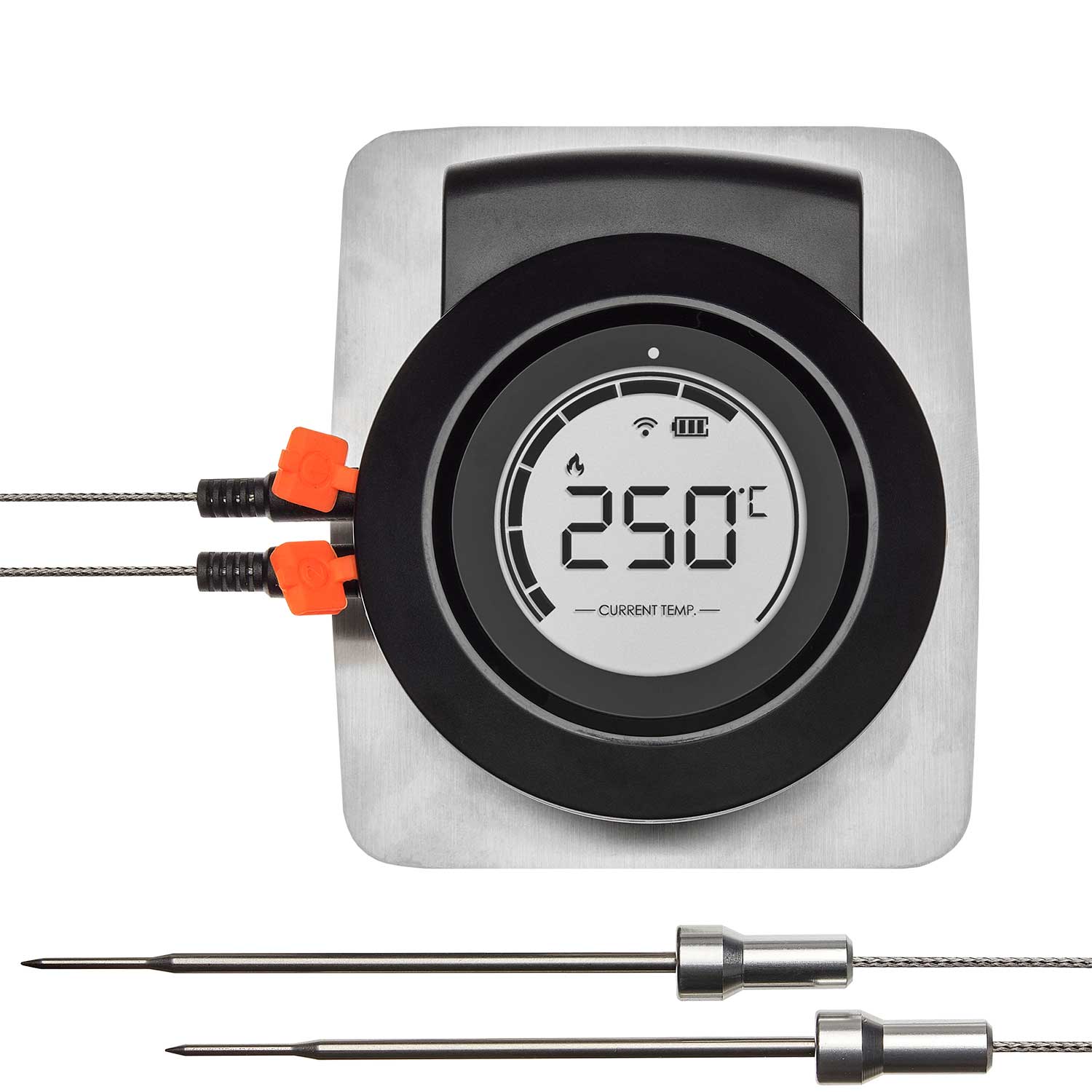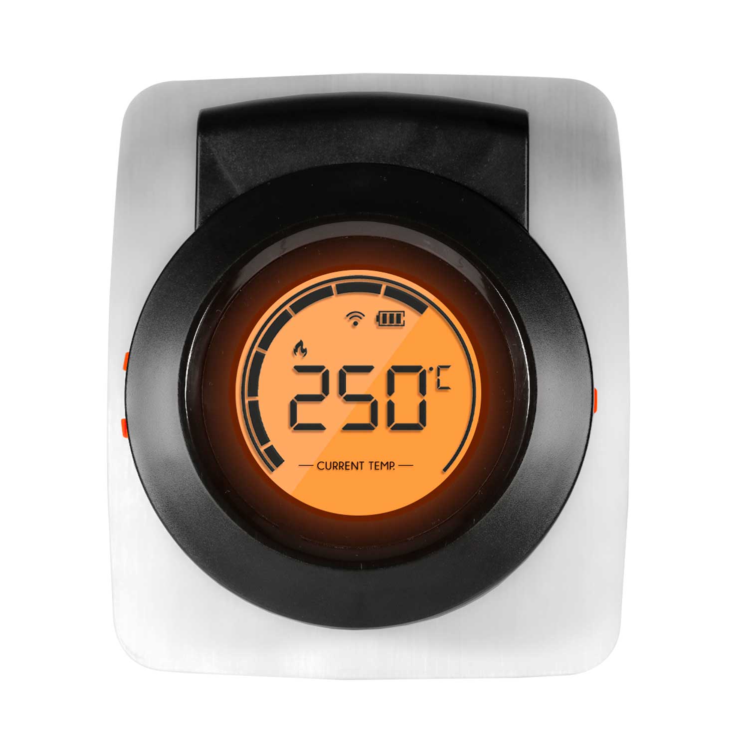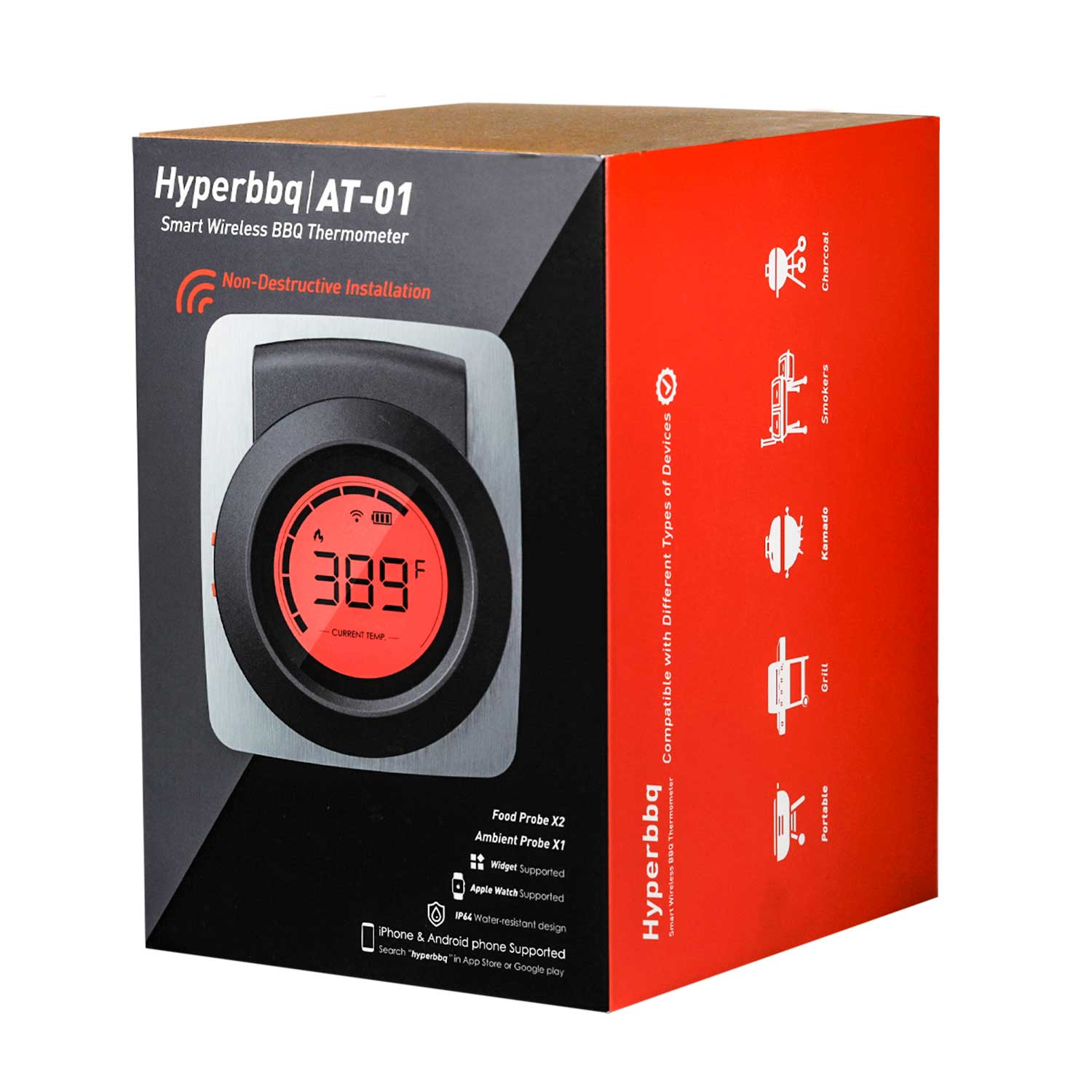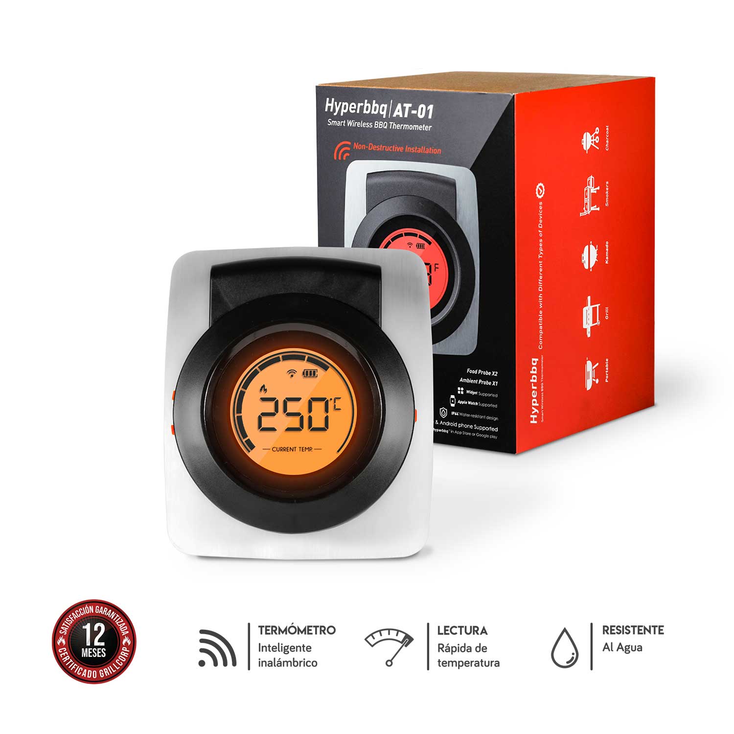 Controlar la temperatura de sus comidas es ahora un paso muy sencillo. Hyper BBQ trae para usted este termómetro con pantalla retroiluminada que mantendrá cualquier parrilla bajo control. Perfecto para adaptar a cualquier parrilla, cuenta alarma y diferentes tipos de programados según el tipo de carne o niveles de cocción. Además, el termómetro Hyper BBQ se puede vincular con tu celular (Androi o ios) desde una App gratuita.