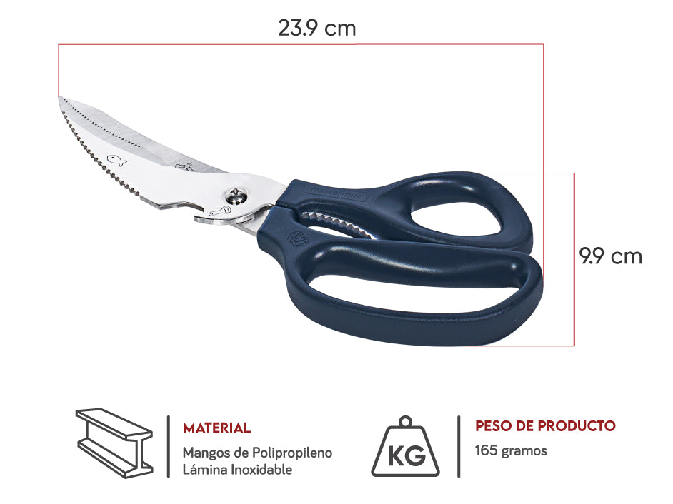 La tijera trinchante Tramontina Supercort con lámina en acero inoxidable y mango de polipropileno ónix de 8 pulgadas es una pieza indispensable para su cocina. Perfecta para destrinchar aves, es una tijera altamente resistente, posee una lámina de acero inoxidable con alto poder de corte y mango de polipropileno que garantiza un manejo más seguro y confortable. Además, es muy fácil de limpiar y es apta para lavavajillas, lo que facilitará su rutina diaria en la cocina. ¡Sin duda, es el producto perfecto para incorporar más practicidad en su cocina!